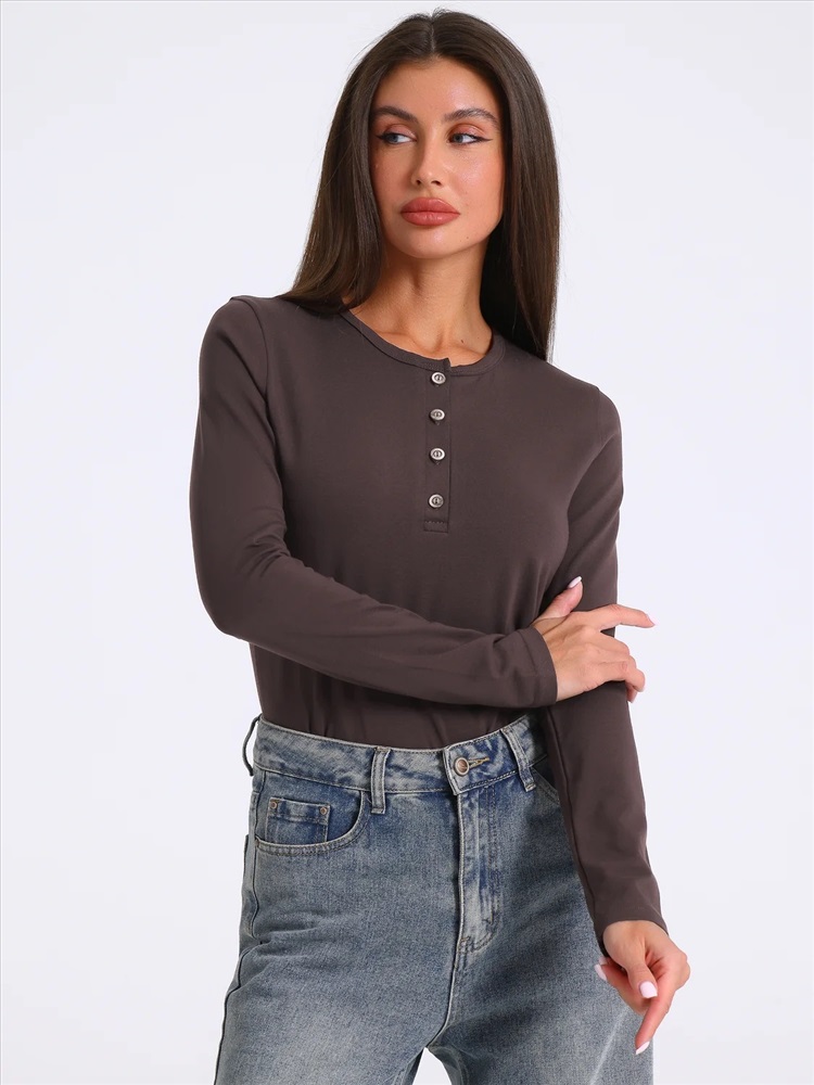 Женский лонгслив выполнен из кулира - легкого хлопкового полотна с лайкрой. Изделие прилегающего силуэта, с длинными рукавами и застежкой на 4 пуговицы. Уход: только машинная стирка (руками не стирать!) при температуре 40 градусов, без предварительного замачивания.