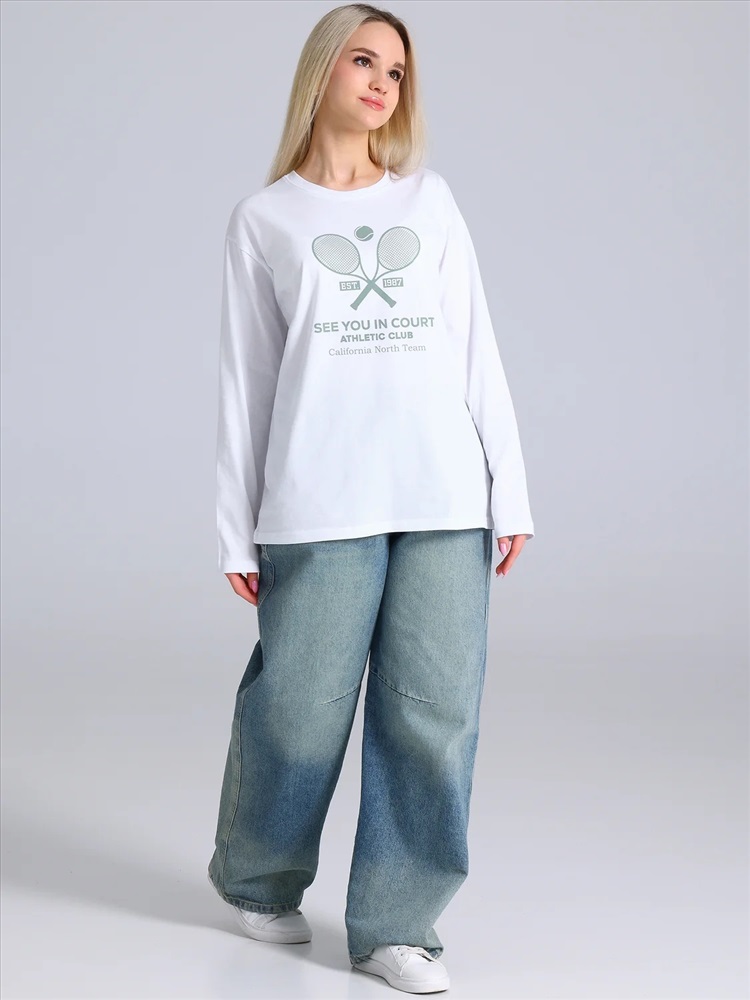 Лонгслив женский oversize выполнен из кулира - тонкого хлопкового полотна. Изделие свободного силуэта, со спущенным плечом и круглым вырезом горловины. Уход: только машинная стирка (руками не стирать!) при температуре 40 градусов, без предварительного замачивания.
