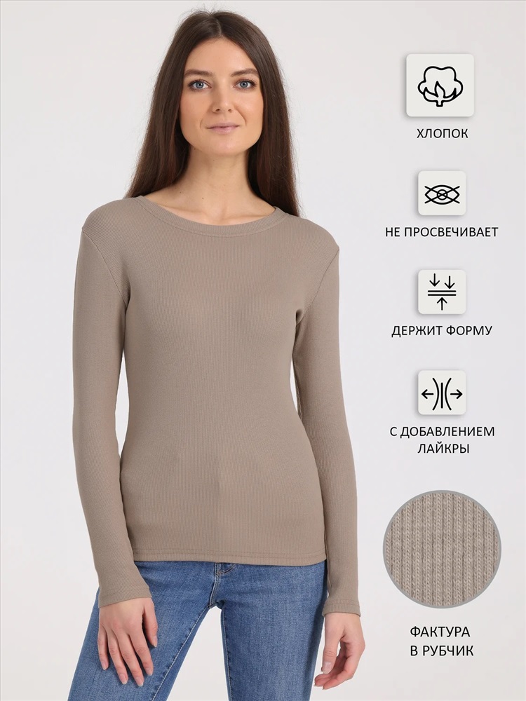 Лонгслив выполнен из эластичного хлопкового полотна в рубчик. Изделие с длинными рукавами и округлым вырезом горловины. Незаменимый базовый предмет женского гардероба! Уход: только машинная стирка (руками не стирать!) при температуре 40 градусов, без предварительного замачивания.