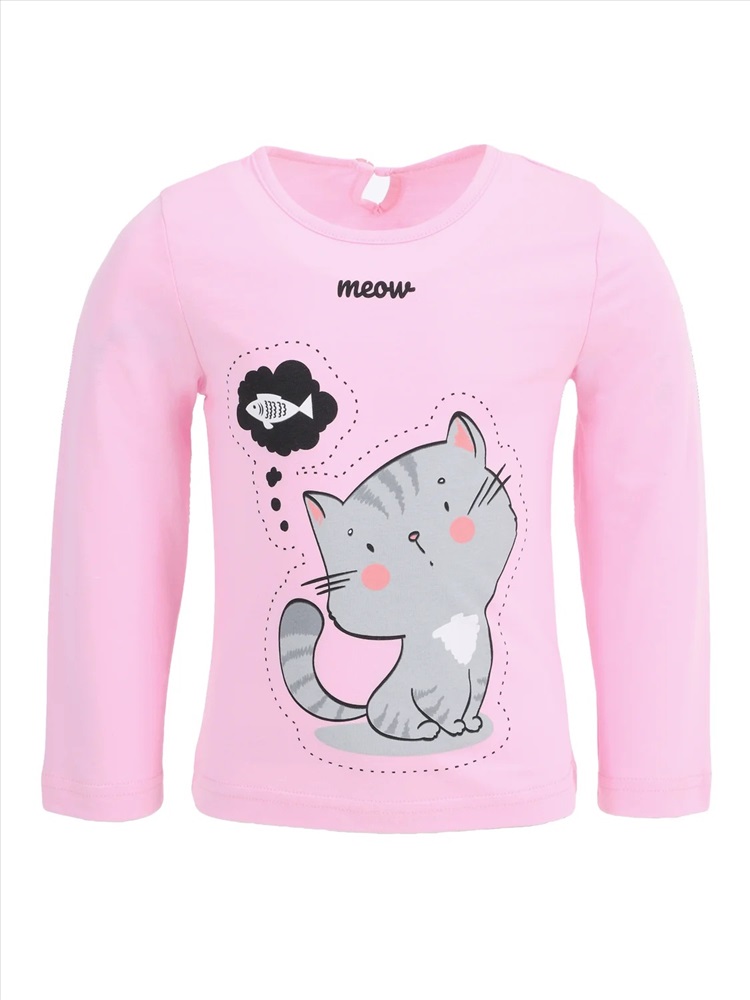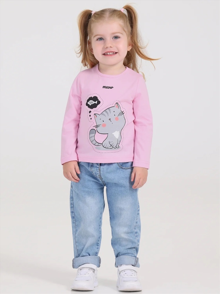 Страна: Россия Лонгслив для девочки выполнен из кулира - тонкого хлопкового полотна. Изделие с длинными рукавами, по спинке застегивается на пуговку, украшено принтом. Отличный выбор на каждый день! Уход: только машинная стирка (руками не стирать!) при температуре 40 градусов, без предварительного замачивания. Изделия с печатью и декором перед стиркой необходимо вывернуть на изнаночную сторону.