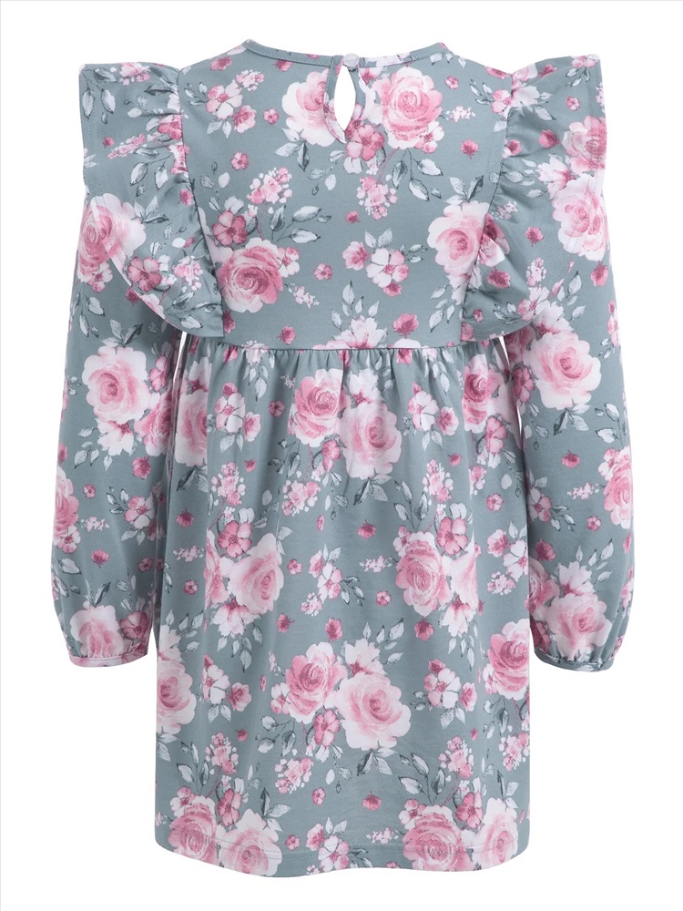 Платье для девочки выполнено из кулира - легкого хлопкового полотна. Изделие с длинными рукавами и расклешенной юбочкой, полочка и спинка украшены воздушными оборками, застежка на кнопки по спинке. Отличный выбор на каждый день! Уход: только машинная стирка (руками не стирать!) при температуре 40 градусов, без предварительного замачивания.