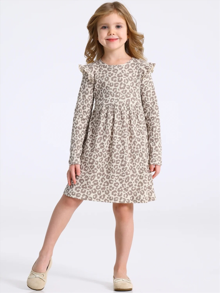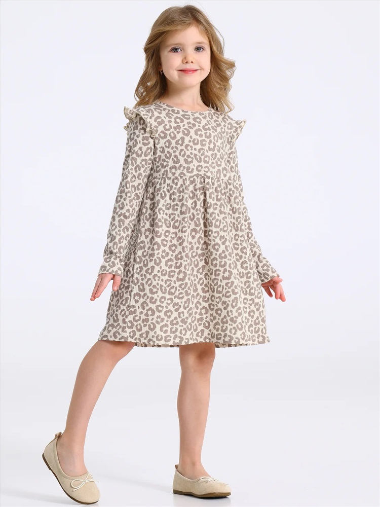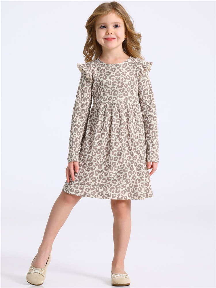 Страна: Россия Платье для девочки из ластика - хлопкового набивного полотна в рубчик. Изделие полуприлегающего силуэта с длинными рукавами, отрезное чуть выше линии талии и круглым вырезом горловины. Юбка присборена, рукава украшены крылышками. Уход: только машинная стирка (руками не стирать!) при температуре 40 градусов, без предварительного замачивания.