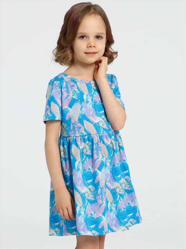 Платье для девочки выполнено из легкого хлопкового полотна. Изделие с короткими рукавами, юбочка присборена по линии талии. Отличный выбор для теплого летнего дня! Уход: только машинная стирка (руками не стирать!) при температуре 40 градусов, без предварительного замачивания.