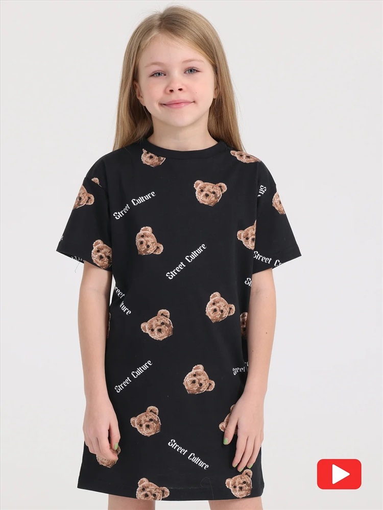 Платье Oversize из кулира - легкого хлопкового полотна. Изделие с короткими рукавами со спущенным плечом, украшено стильной набивкой. Отличный выбор для летнего жаркого дня! Уход: только машинная стирка (руками не стирать!) при температуре 40 градусов, без предварительного замачивания.