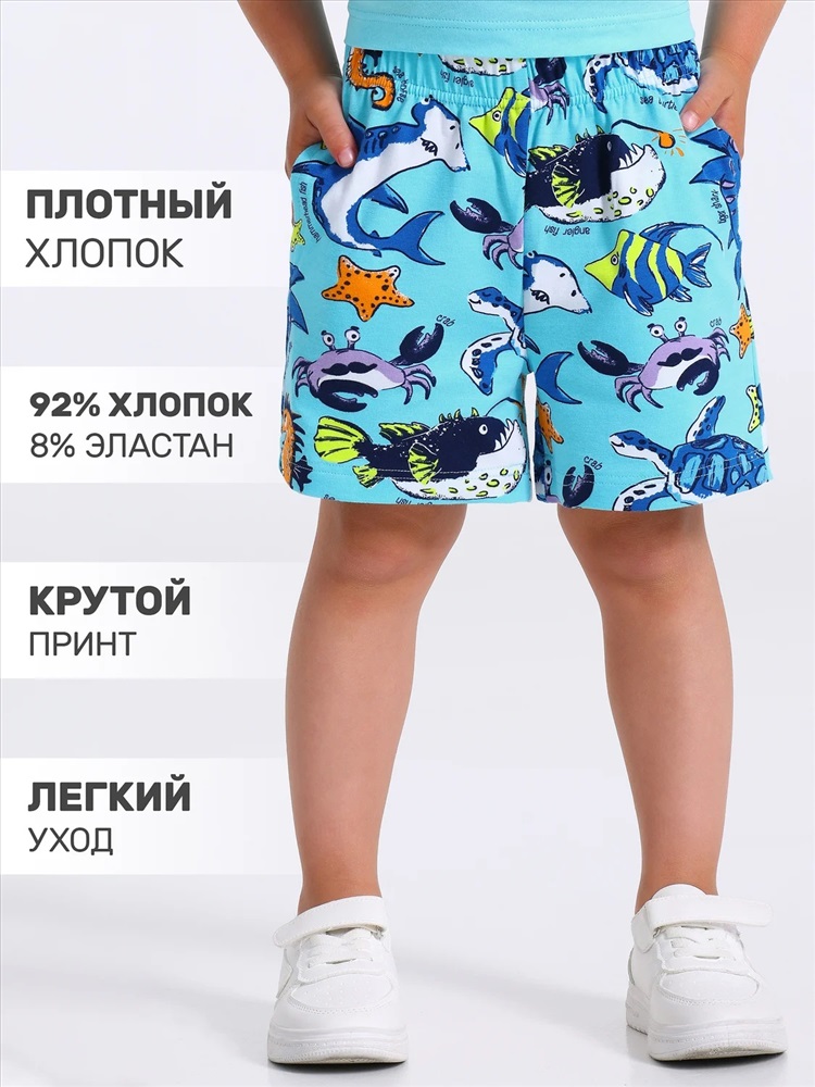 Шорты для мальчика выполнены из кулира - легкого хлопкового набивного полотна с лайкрой. Изделие длиной до середины бедра, на эластичном поясе и удобными карманами. Уход: только машинная стирка (руками не стирать!) при температуре 40 градусов, без предварительного замачивания.