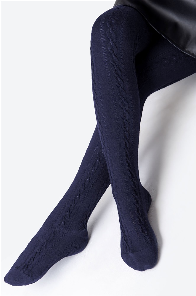 Ажурные колготки для девочки – это всегда нарядный вариант в школу, на праздник или торжество. Синие колготки с рисунком косы выполнены с высоким содержанием хлопка. Демисезонная модель на высокой талии, в поясе мягкая эластичная резинка.