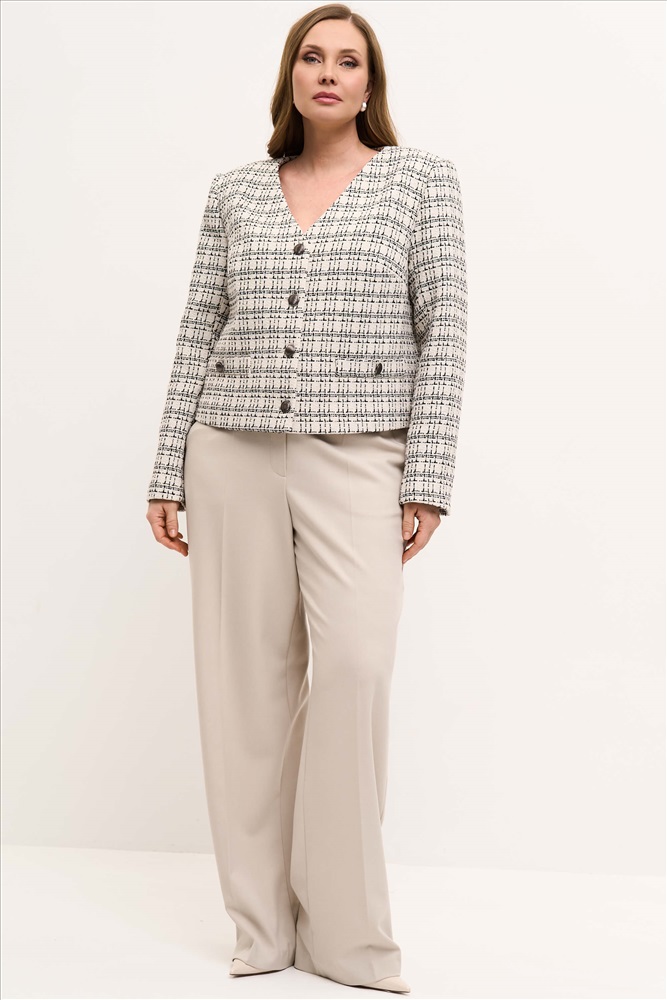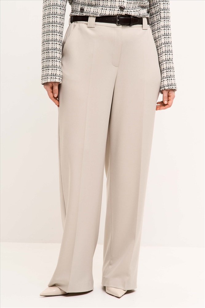 Состав: 55% Вискоза 40% ПЭ 5% Эластан Длина: 110 см. Цветовая гамма: Серо-бежевый Силуэт: Прямой Принт: Нет Коллекция: Большие размеры Весна #1 Брюки со стрелками в актуальном оттенке. Модель прямого силуэта. Брюки широкие со стрелками, пояс на резинке. Застежка на молнию и пуговицу, боковые карманы. Комментарии к товару