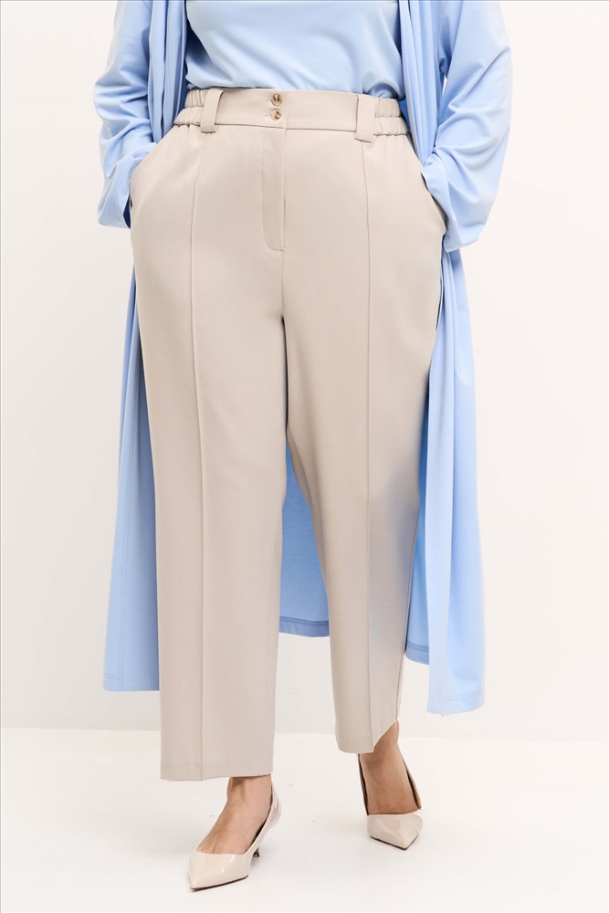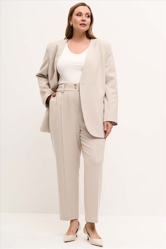 Состав: 55% вискоза 40% полиэстер 5% эластан Длина: 100 см. Цветовая гамма: Серо-бежевый Силуэт: Заужен к низу Принт: Нет Коллекция: Большие размеры Весна #1 Брюки со стрелками из костюмной поливискозы. Комфортные брюки, зауженные к низу с карманами и застроченными стрелками. На поясе резинка для лучшей посадки. Комментарии к товару