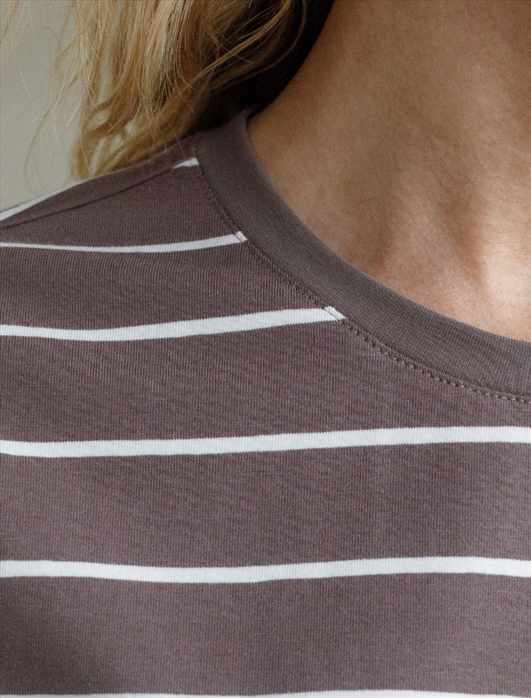 Плотность: 170 Г/м2 Стильная и модная женская футболка кофейного цвета в белую полоску станет отличным дополнением к вашему гардеробу. Футболка плотностью 170 Г/м2 изготовлена из премиального хлопка с добавлением эластана. Добавление эластана в состав изделия способствует формоустойчивости. Эта классическая футболка подходит для создания кэжуал образа на каждый день и идеально подойдет для работы. Модель не мнется, что делает ее практичным вариантом для активных женщин, которые ценят стиль и удобство. Благодаря современному принту полоска эта футболка легко комбинируется с различными элементами гардероба. Она станет универсальным решением для тех, кто предпочитает комфортный стиль casual. Повседневная футболка подчеркнет вашу индивидуальность и позволит вам выглядеть привлекательно в любой ситуации. Легкость в уходе и высокая износостойкость делают ее незаменимой вещью в вашем гардеробе. Одевайте эту модель как на работу, так и на встречу с друзьями — она всегда будет уместна! Стильная и практичная модель с простым кроем и лаконичным дизайном - идеальный вариант для тех, кто ценит качество, минимализм и классический стиль в одежде. Комментарии к товару