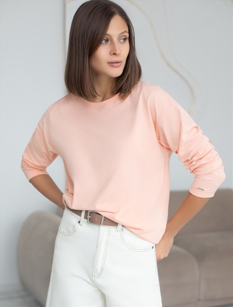 Свободный лонгслив пудрового цвета с длинным рукавом выполнен из премиального хлопка с добавлением эластана, что обеспечивает комфорт и приятные тактильные ощущения. Однотонная расцветка и круглый ворот создают стильный и универсальный образ, который подойдет для повседневного использования. Спущенная линия плеча придает лонгу современный и расслабленный силуэт. Такой лонгслив идеально подходит для весеннего и летнего сезона благодаря легкой и дышащей ткани. Большие размеры позволяют выбрать оптимальный вариант на любую фигуру, обеспечивая свободу движений и удобство на каждый день. Этот комфортный лонгслив станет отличной базой в гардеробе, сочетаясь с различными стилями одежды и создавая простой, но эффектный образ.