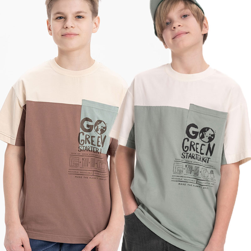 Состав: 100%хлопокОписание: Футболка для мальчика свободного кроя - это идеальный выбор для активного ребенка. Вырез горловины обработан эластичной тканью — она прекрасно держит форму, не растягивается, при этом ребёнку удобно надевать и снимать футболку. Футболка летняя с надписями. "Go green! Started kit: your go green started kit includes: beeswax wrap, bamboo cultery, organic cotton mesh bags, organic cotton grocery bag" - Стань зеленым! Базовый набор: твой зеленый набор включает в себя: восковую упаковку, бамбуковые приборы и трубочки, сумки и упаковки из органического хлопка, "reusable .recyclable. 100% plastic free" - перерабатываются, многоразовые.100% без пластика, "make the planet smile" - подари планете улыбку. Спортивная футболка подходит как для подростков так и для малышей в детский сад. Подходит для любого времени года.