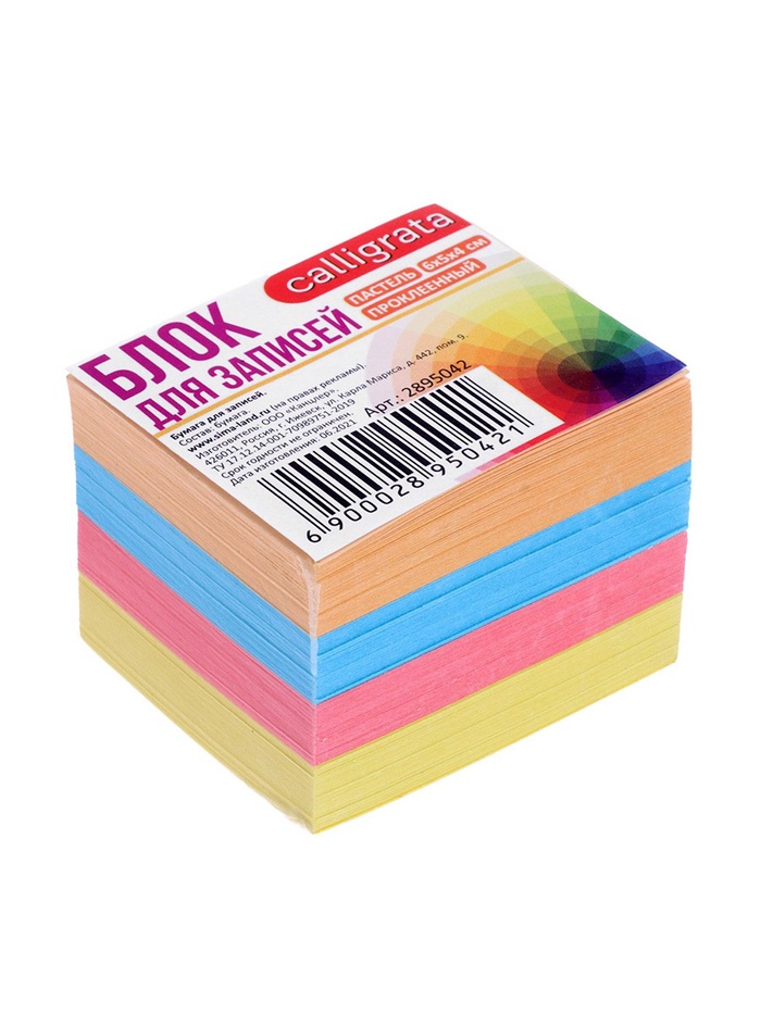 Производитель: Calligrata; Габариты: 4 x 5 x 6; Артикул поставщика: 2895042; Страна: Россия; В боксе: 48 шт; Состав: Бумага; Материалы: бумага; Фасовка: по 1 шт; Индивидуальная упаковка: Термоусадочная пленка; Сертификат: Не подлежит сертификации; Набор: Нет; Цвет: МИКС; Плотность, г/м²: 80; Европодвес: Нет; Количество листов: 320; Материал: Бумага; Тип: Офсетная; Цветовая гамма: Пастель; Особенности: Проклеенный; Размер, мм: 60 х 50; Штрихкод на единице товара: Да; Температурное ограничение транспортировки: Нет