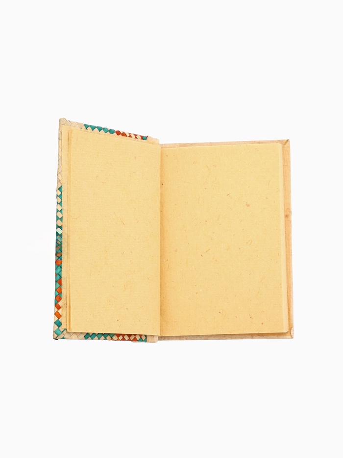 Заметки и планы — это тоже форма творчества. Этот плетёный блокнот с ярким рисунком на обложке превращает обычный процесс записи в момент, наполненный цветом и текстурой. Его компактный размер и твёрдый переплёт из пальмового листа делают его идеальным спутником для тех, чьи идеи не умещаются в строгие рамки и требуют такого же свободного пространства для выражения.