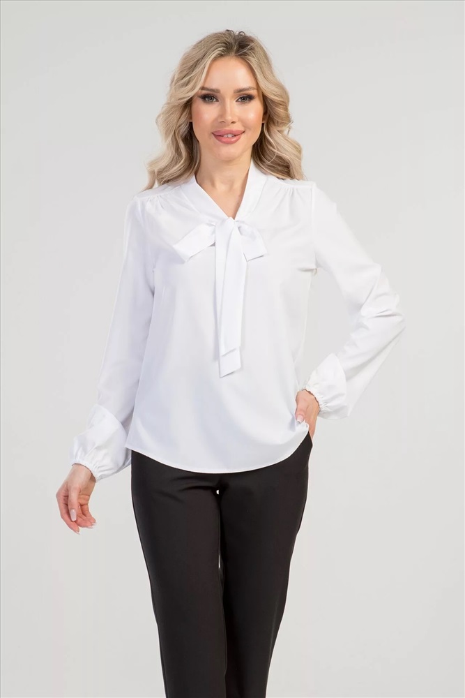 Состав: полиэстер 70 вискоза 25 эластан 5 Модель изделия: Полуприлегающий силуэт Материал: Блузочная Тип: Офисная Сезон: Осень-Зима; Весна-Лето; Круглый год Цвет модели: белый Параметры модели: 87-60-97 Страна производства: Россия Изящная блуза с завязкой "бант" из эластичной блузочной ткани. Прямого силуэта из легкой ткани - Ниагара. Расцветка голубой. Горловина оформлена воротником-стойкой, переходящим в пышный бант на завязках. Длинные втачные рукава собраны на резинку 63 см. Легкая и воздушная блуза придаст Вам женственности и шарма. Рекомендуемая стирка при t не более 30. Низ прямой, без разрезов. Без застёжки. Без подклада. ДИ в 42-44 р 63 см, в 46-48 р 64 см., в 50-54 р 66 см. Рост модели 168 см., 44 размера. Комментарии к товару
