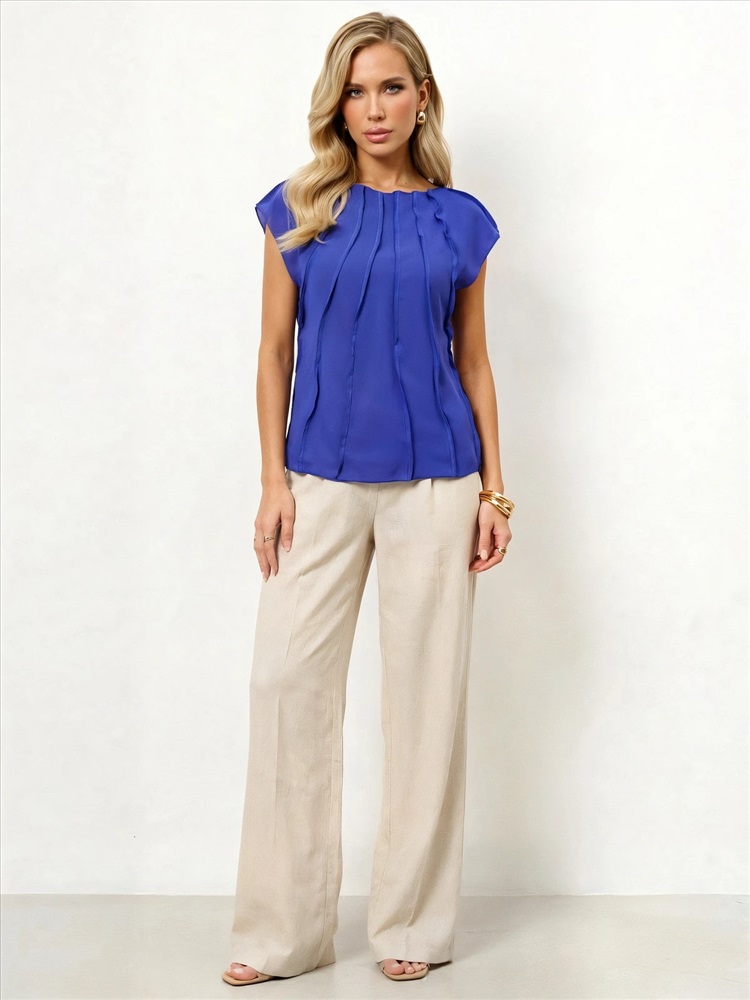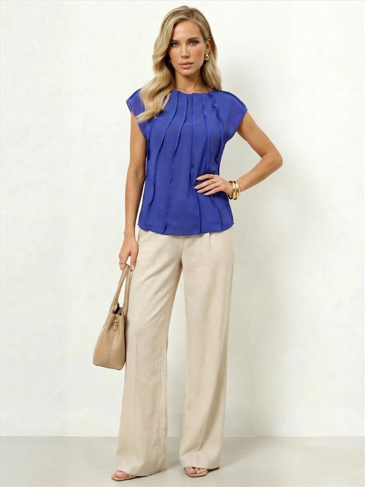 Блуза из креп-шифона с декоративными вертикальными отстрочками по всему изделию.