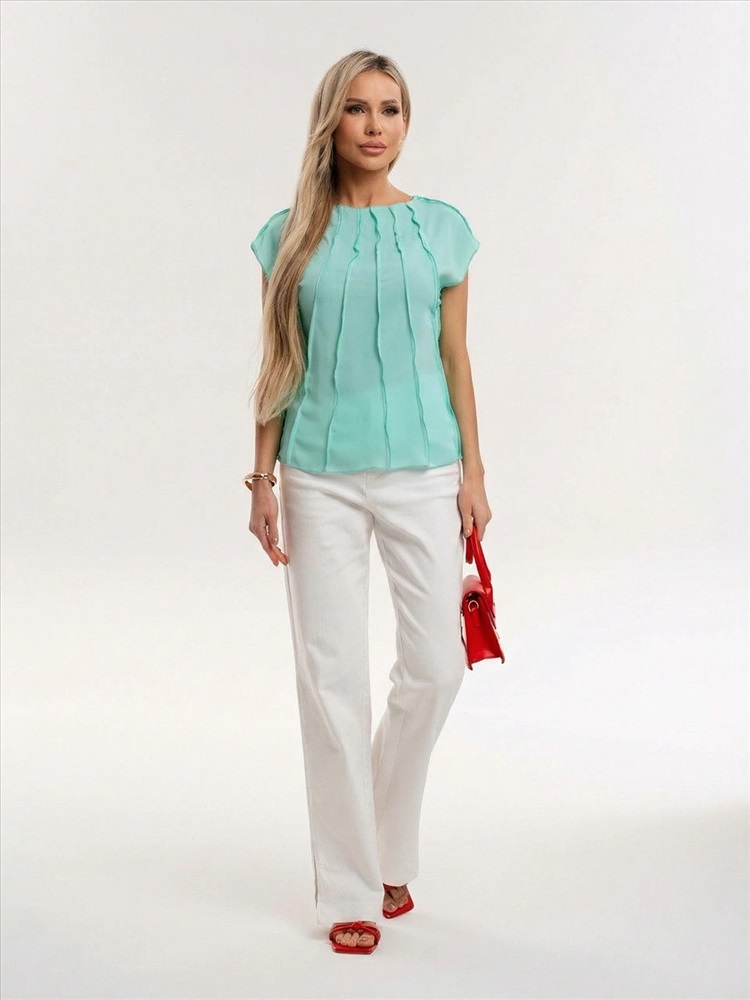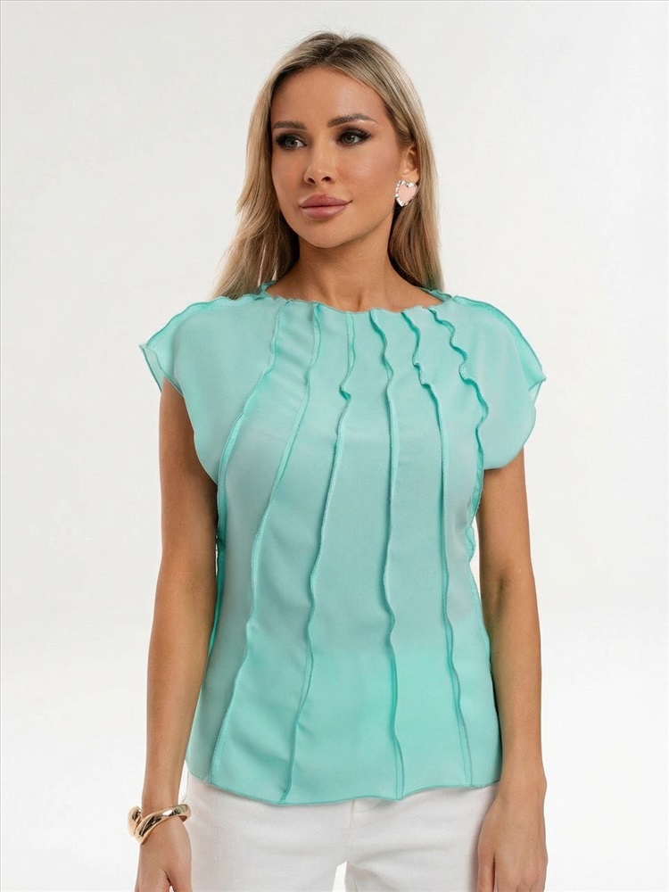 Блуза из креп-шифона с декоративными вертикальными отстрочками по всему изделию.