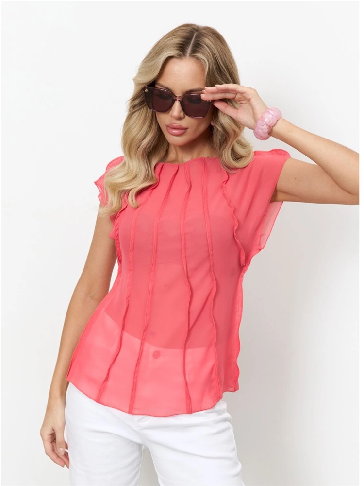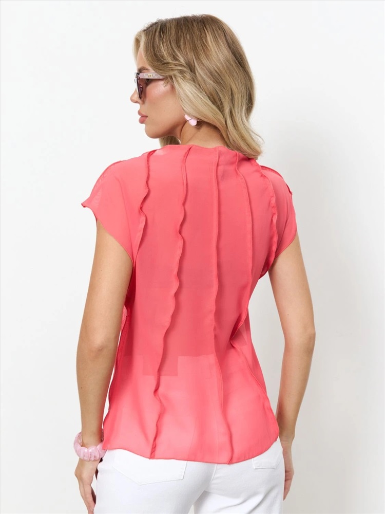 Блуза из креп-шифона с декоративными вертикальными отстрочками по всему изделию.