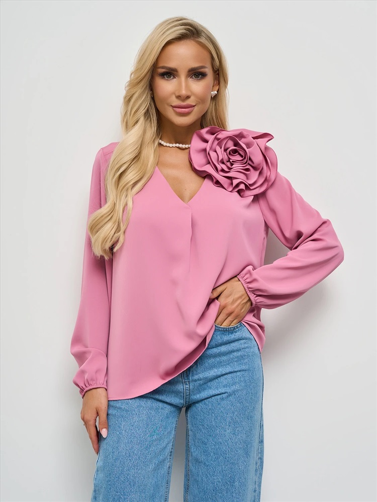 Блуза прямого кроя с V-образным вырезом.