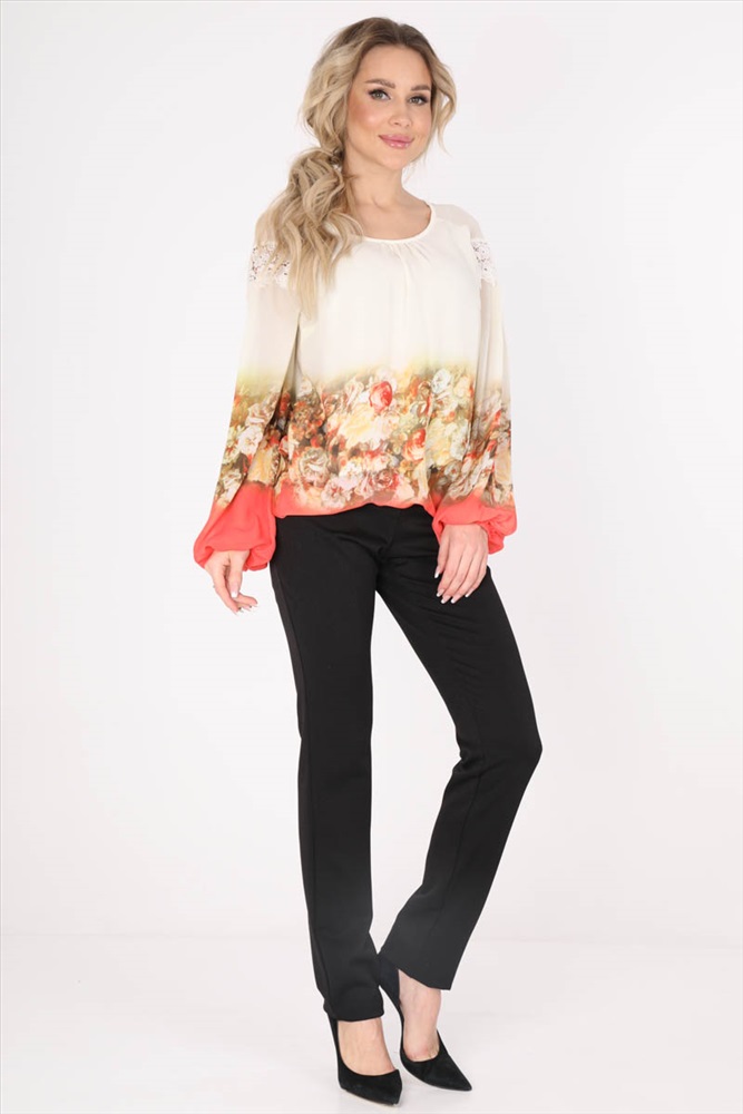 ШтрихКод: 4650333149868 По размеру: 42, 44 Состав: Полиэстер 95% Эластан 5% Скидка на сайте: 50% Срок готовности: 2017-04-01T00-00-00 Нарядная блуза прямого силуэта из легкого текстильного полотна комбинированного бело-кораллового цвета. Передняя часть блузы по горловине дополнена сборками и обработана окантовкой. Широкие втачные рукава обработаны манжетами на резинке и украшены декоративными кружевными вставками по линии плеча. Низ изделия обработан резинкой. Аксессуары в комплект не входят. Длина изделия по спинке от плечевого шва до низа — 67 см. Комментарии к товару