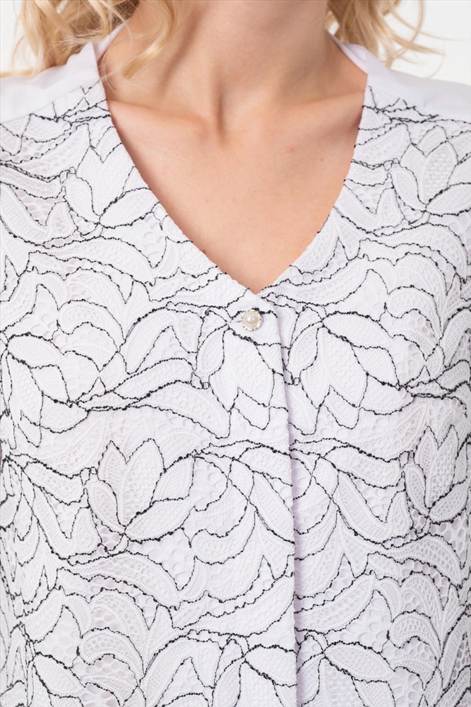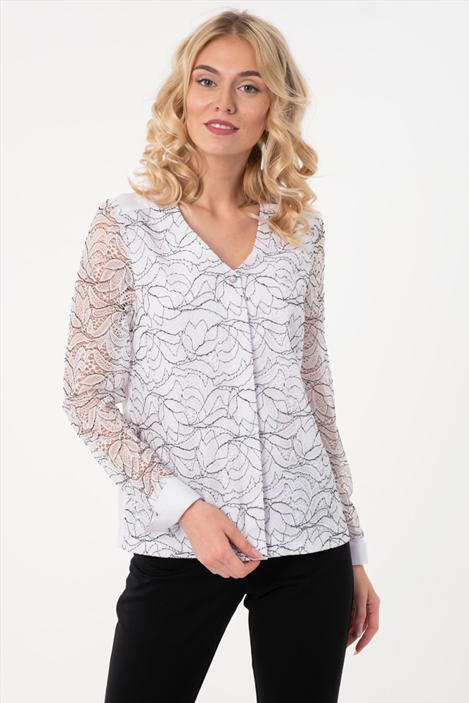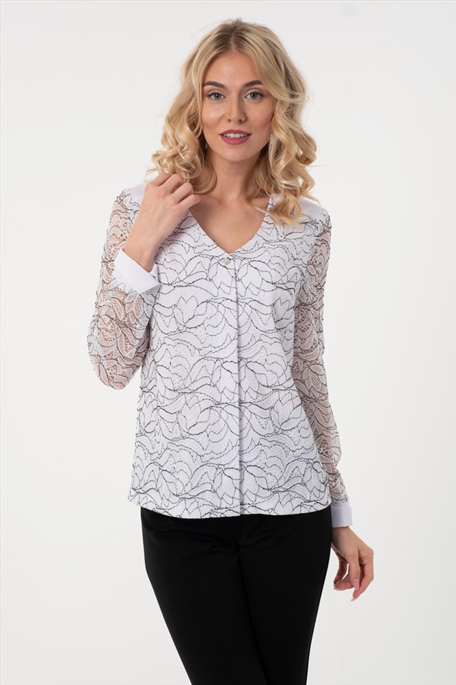 По размеру: 42 Состав: Полиэстер 95% Эластан 5% ШтрихКод: 4650333151885 Скидка на сайте: 50% Срок готовности: 2019-09-03T00-00-00 Роскошная блузка полуприлегающего силуэта белого цвета. Перед изделия выполнен из текстильного кружевного полотна, а спинка из текстильного полотна. Фигурный вырез изделия обработан внутренней обтачкой. По переду изделия выполнена декоративная планка с супатной застежкой. Втачные рукава обработаны манжетами. Длина изделия по спинке от плечевого шва до низа изделия — 62 см. Рост модели - 170 см. Комментарии к товару