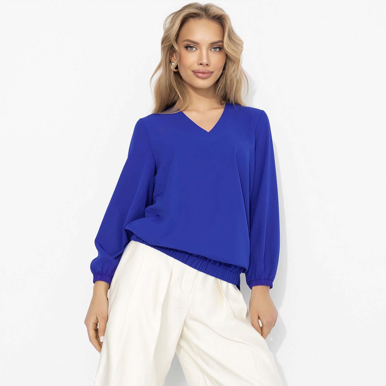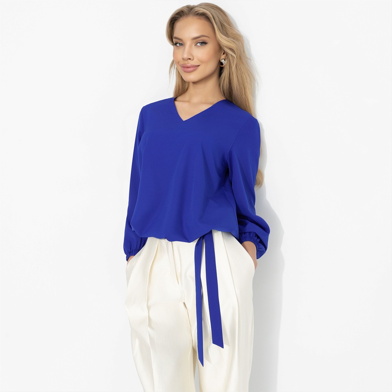 Щёлк – моментальня вспышка. Как будто где-то щёлкнул рубильник, и весна включилась. Этот электрический синий бьёт точно в цель: тебя заметит каждый. Глубокий V-вырез вытягивает силуэт, мягкие рукава добавляют пластики, твил красиво держит форму и струится при движении. Гладкая и комфортная ткань дарит тебе ультраженственность. Он просто посмотрел – и уже весь твой. Блуза оформлена резинкой по нижнему краю и завязками. Комментарии к товару
