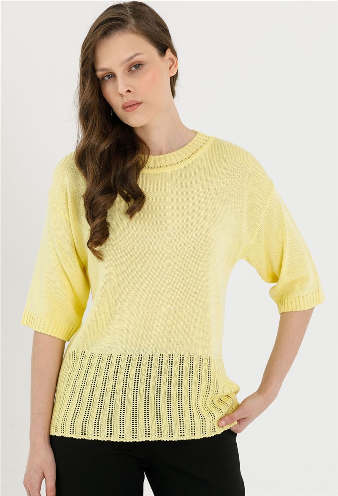 Блуза вязаная жёлтого цвета с короткими рукавами от фабрики Priz. Модель прямого силуэта, круглый вырез горловины. Рукав втачной. Комфорт и стиль на каждый день., Оттенок цвета может незначительно отличаться от фото., Ожидание отправки (рабочих дней): 7, Размер модели: 44., Рост модели: 174 см., Состав:, Вискоза 60%, Акрил 40%, Тип ткани:, Вязаный трикотаж