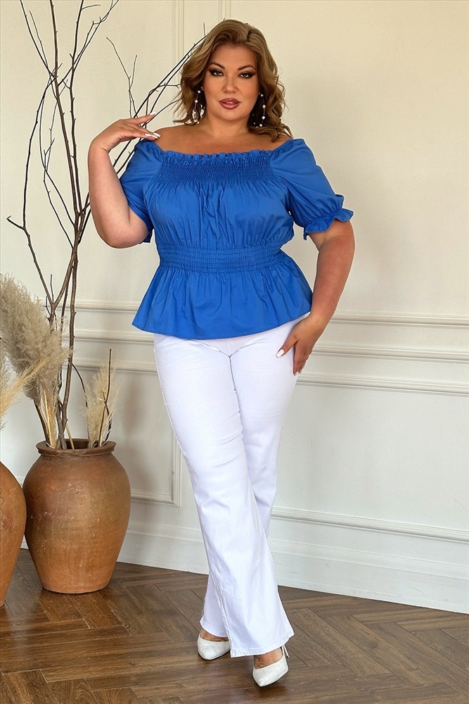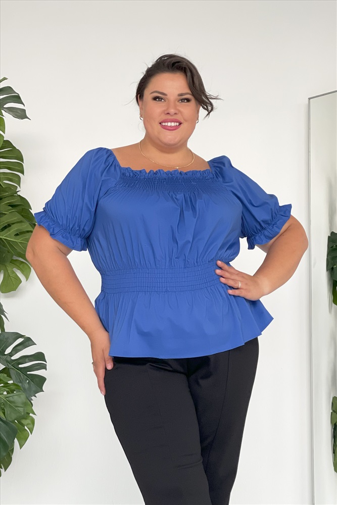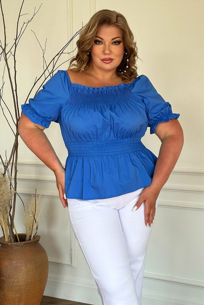Цвет: Синий Фасон: Блузка Материал: Хлопок Длина рукава: Короткий Параметры модели: Рост 173 см, Размер 54 Параметр- Материал: Хлопок Параметр- Цвет: Синий Параметр- Параметры модели: Рост 168 см, Размер 54 Параметр- Длина рукава: Короткий Блузка "рукав фонарик" со сборкой на талии электрик Романтичная блузка из мягкого материала. Эластичный широкий вырез и проймы коротких рукавов-фонариков можно носить в стиле Кармен. Благодаря резинке-венгерке на завышенной талии и на груди блузка отлично садится по фигуре и не сковывает движений. Она незаменим в жаркую погоду, когда хочется носить максимально легкую и открытую одежду. Блузка отлично комбинируется с юбками, брюками, джинсами, шортами. Длина изделия 50 размера по спинке - 51 см. В каждом следующем размере длина увеличивается. Комментарии к товару