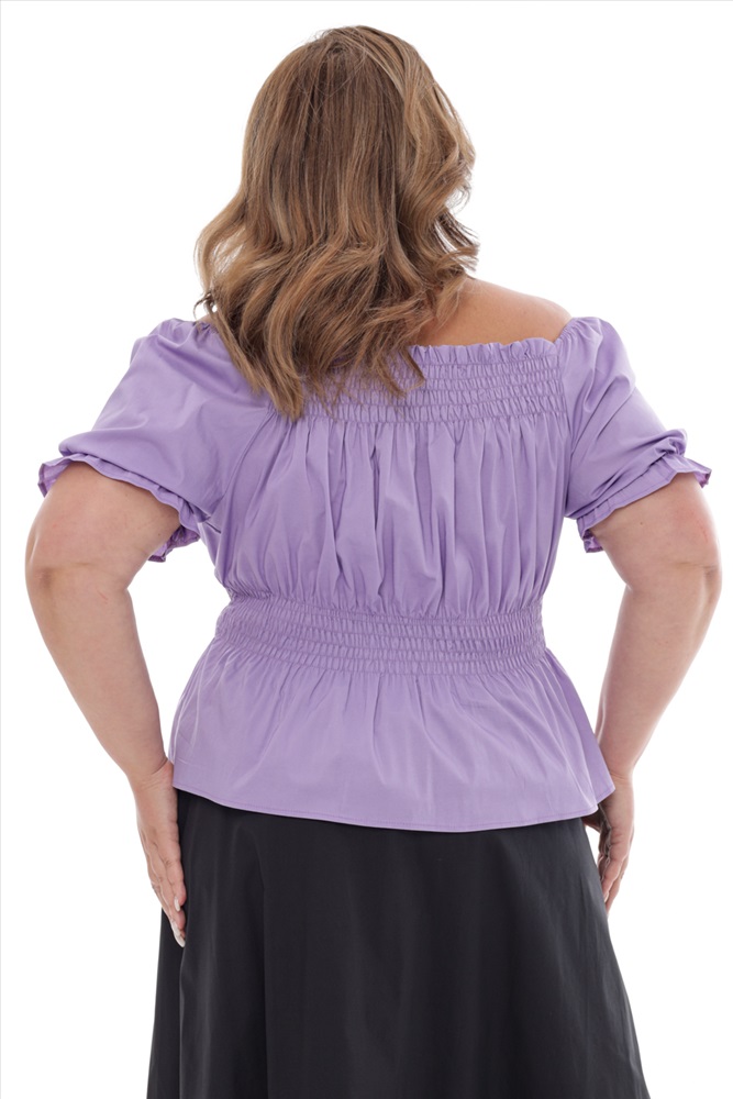 Цвет: Фиолетовый Фасон: Блузка Материал: Хлопок Длина рукава: Короткий Параметры модели: Рост 173 см, Размер 54 Параметр- Материал: Хлопок Параметр- Цвет: Фиолетовый Параметр- Параметры модели: Рост 173 см, Размер 54 Параметр- Длина рукава: Короткий Блузка "рукав фонарик" со сборкой на талии лаванда Романтичная блузка из мягкого материала. Эластичный широкий вырез и проймы коротких рукавов-фонариков можно носить в стиле Кармен. Благодаря резинке-венгерке на завышенной талии и на груди блузка отлично садится по фигуре и не сковывает движений. Она незаменим в жаркую погоду, когда хочется носить максимально легкую и открытую одежду. Блузка отлично комбинируется с юбками, брюками, джинсами, шортами. Длина изделия 50 размера по спинке - 51 см. В каждом следующем размере длина увеличивается. Комментарии к товару