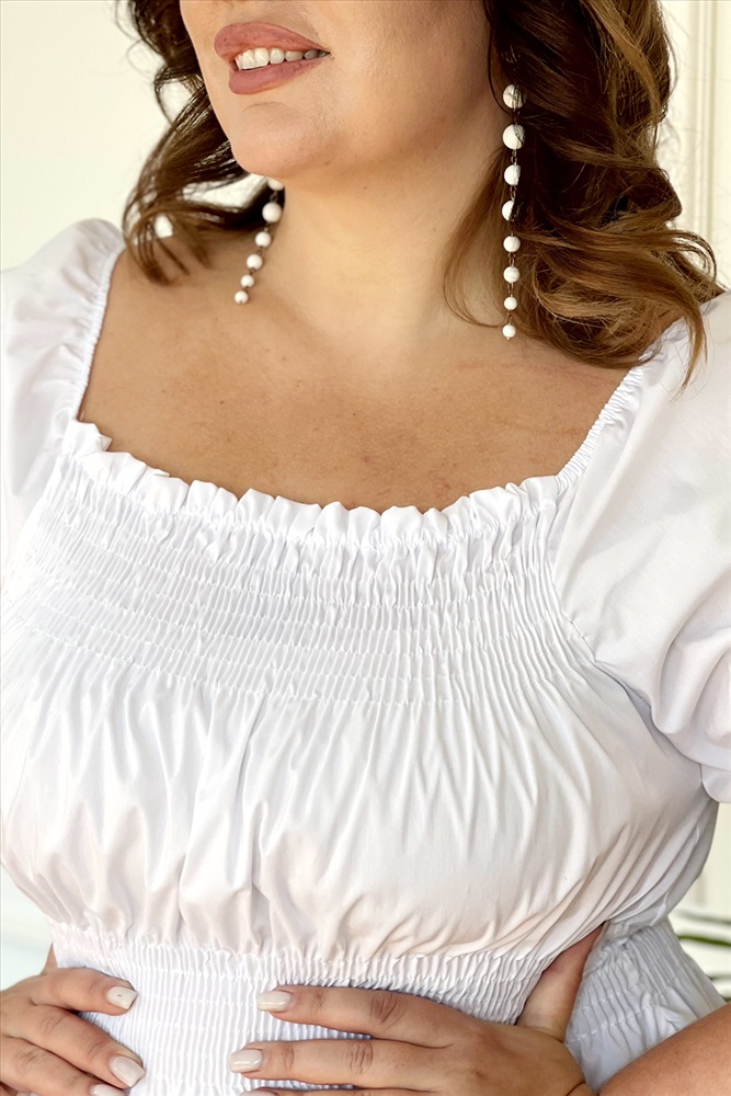 Романтичная блузка из мягкого материала. Эластичный широкий вырез и проймы коротких рукавов-фонариков можно носить в стиле Кармен. Благодаря резинке-венгерке на завышенной талии и на груди блузка отлично садится по фигуре и не сковывает движений. Она незаменим в жаркую погоду, когда хочется носить максимально легкую и открытую одежду. Блузка отлично комбинируется с юбками, брюками, джинсами, шортами.