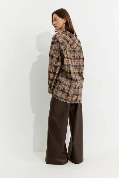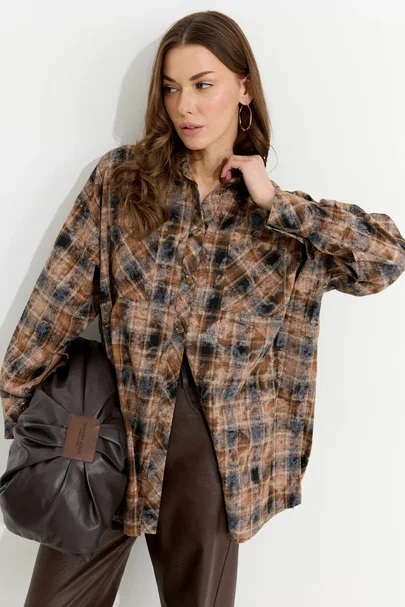 Блузка прямого силуэта из плательно-костюмной ткани с фигурным низом. Воротник стояче-отложной с отрезной стойкой, по центру застежка на петли и пуговицы. Рукав со спущенной линией плеча, по низу манжета с застежкой на петли и пуговицы. По переду накладные карманы. На спинке кокетка со складками. Обращаем ваше внимание, что фурнитура может отличаться от фото.