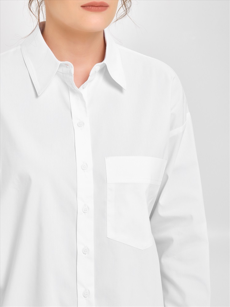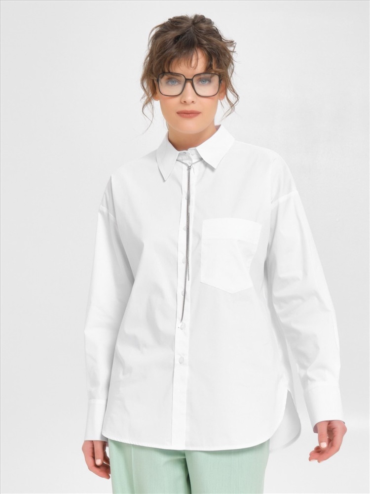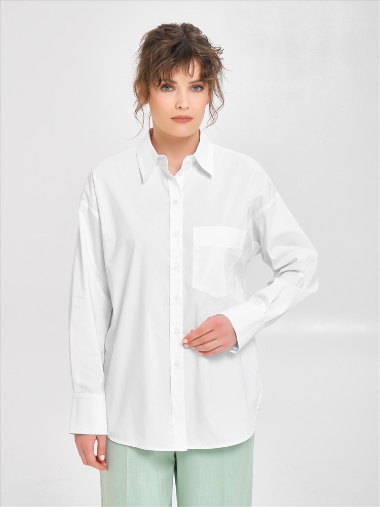 Блузка белая прямая от фабрики Priz. Выполнена из текстильного полотна. Модель со спущеным плечом. Спереди накладной карман и цельнокроеная планка с застёжкой на петли и пуговицы. Спинка с кокеткой, под кокеткой складка. Низ блузки закруглён. Воротник сорочечный. По низу рукава защипы, планка и манжета с застёжкой на пуговицы. Блузка декорирована отделочными строчками. Идеальный выбор для офисных модниц., Оттенок цвета может незначительно отличаться от фото., Ожидание отправки (рабочих дней): 7, Длина: в росте 164 : в 42 р-ре - 74 см, в 54 р-ре - 77,5 см., Размер модели: 44., Рост модели: 174 см., Состав:, Хлопок 76%, Полиэстер 22%, Эластан 2%, Тип ткани:, Текстиль