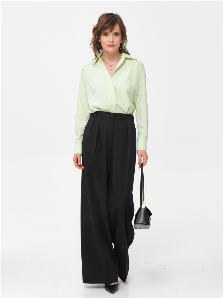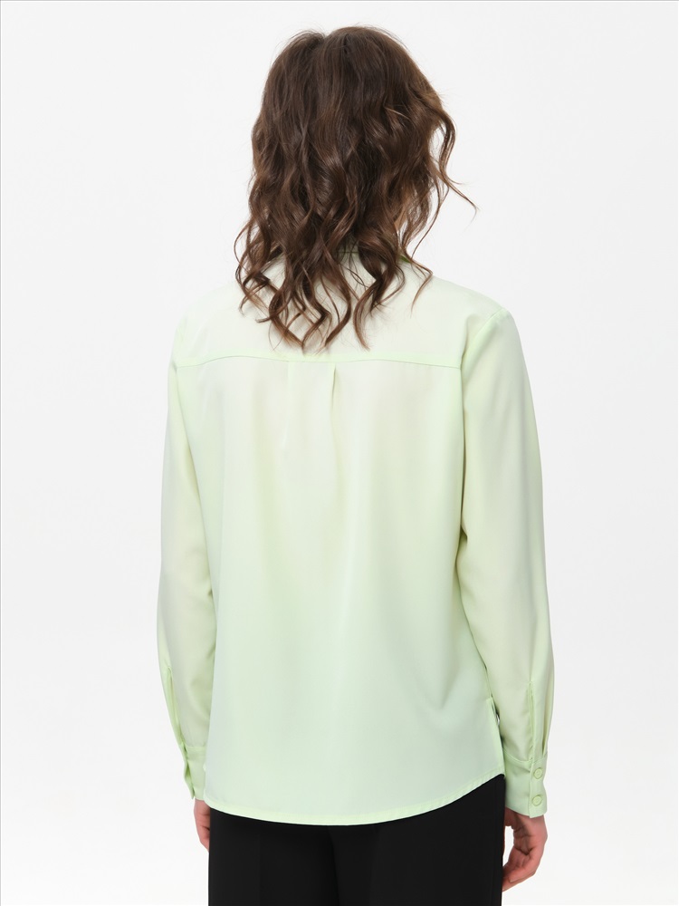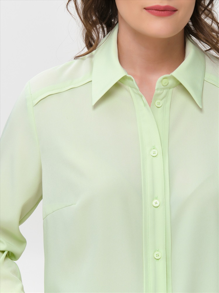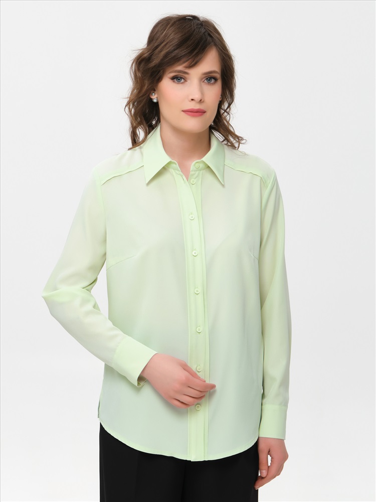 Блузка бледно-зелёная с длинным рукавом от фабрики Priz. Модель прямого силуэта, выполнена из текстильного полотна. Спереди кокетки и планка с застёжкой на петли и пуговицы. Спинка с кокеткой, под кокеткой складка. По низу рукава разрез, защип и манжета с застёжкой на пуговицы. Воротник сорочечный. В боковых швах разрезы. Блузка декорикована кантами из основной ткани. Идеальный выбор для офисных модниц., Оттенок цвета может незначительно отличаться от фото., Ожидание отправки (рабочих дней): 7, Длина: в 42 р-ре - 65,5 см; в 54 р-ре - 69 см., Размер модели: 44., Рост модели: 174 см., Состав:, Полиэстер 65%, Вискоза 30%, Эластан 5%, Тип ткани:, Текстиль