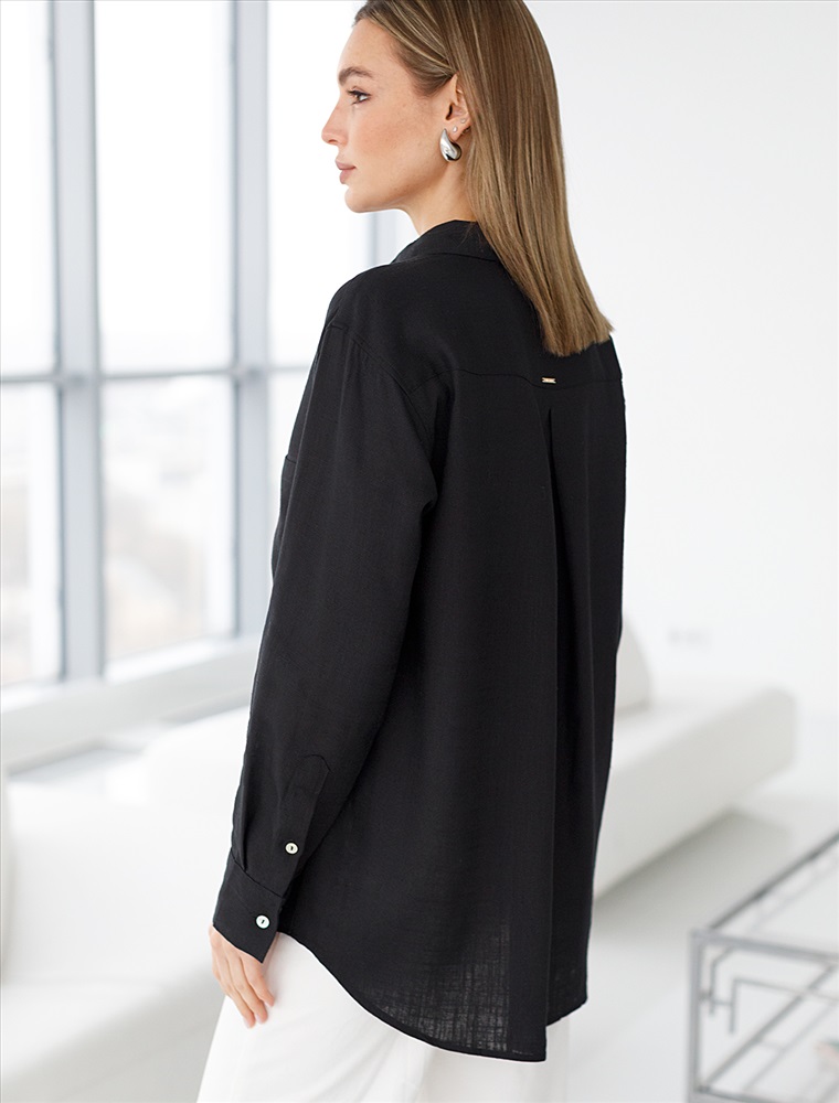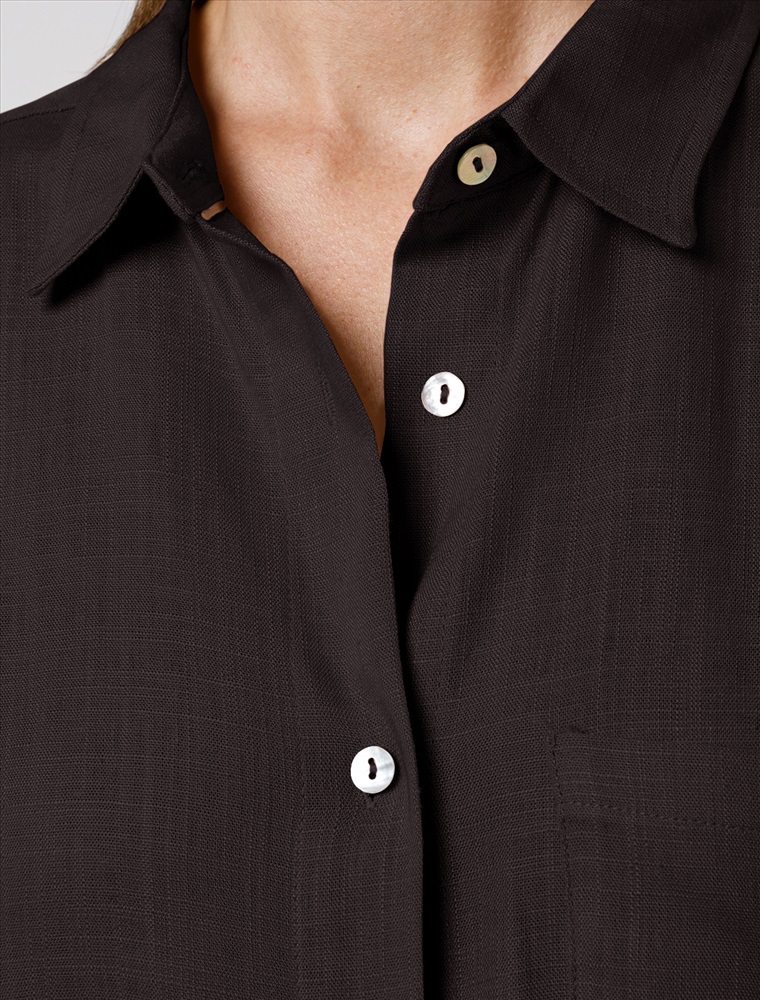 Блузка выполнена изо льна с вискозой. Модель с застежкой на пуговицы из натурального перламутра дополнена сольным карманом. Сочетается в костюме с брюками D24.222 и шортами D28.052. Ткань изящно струится, почти не мнется и сохраняет форму в течении долгого времени, обладает высокой воздухопроницаемостью, обеспечивая комфорт даже в самое жаркое время года.