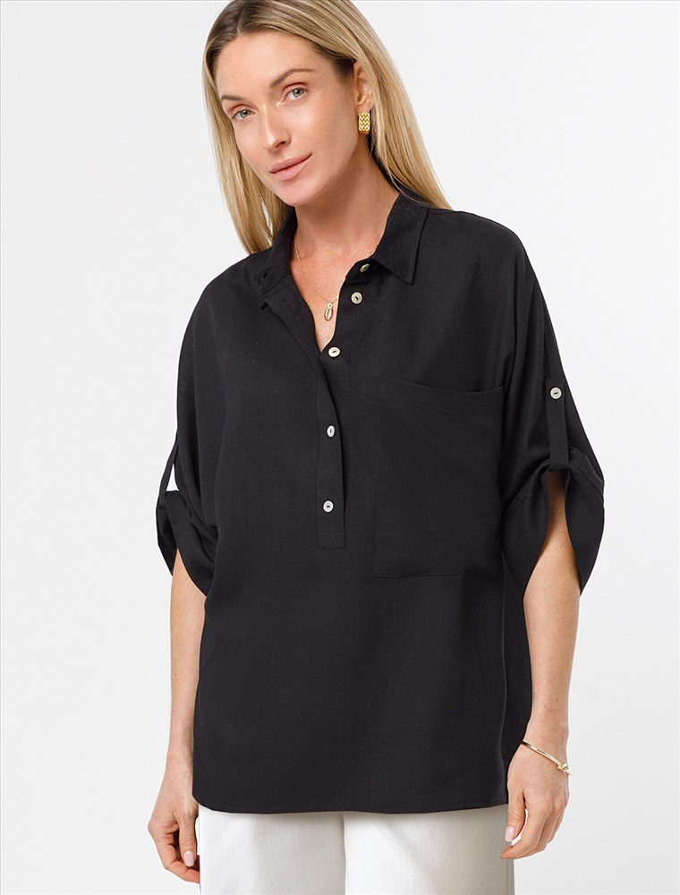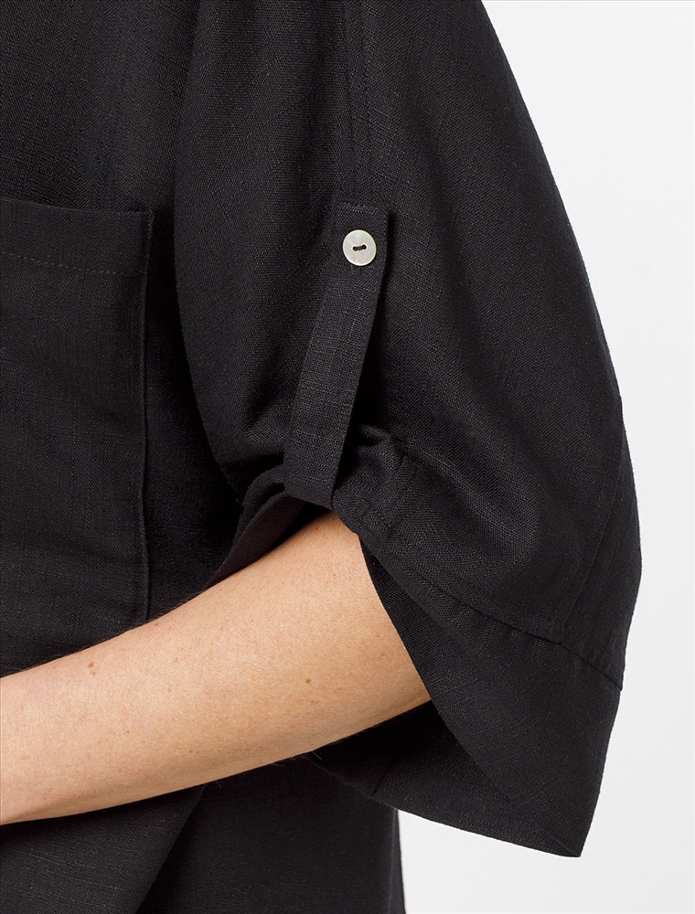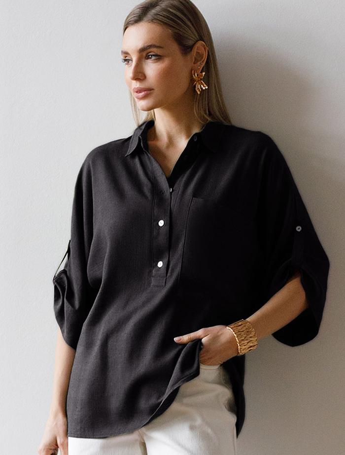 Блузка выполнена изо льна с вискозой. Модель с цельнокроеным рукавом с застежкой на пату дополнена сольным карманом и застежкой на пуговицы из натурального перламутра. Сочетается в костюме с брюками D24.222 и шортами D28.052. Ткань изящно струится, почти не мнется и сохраняет форму в течении долгого времени, обладает высокой воздухопроницаемостью, обеспечивая комфорт даже в самое жаркое время года.