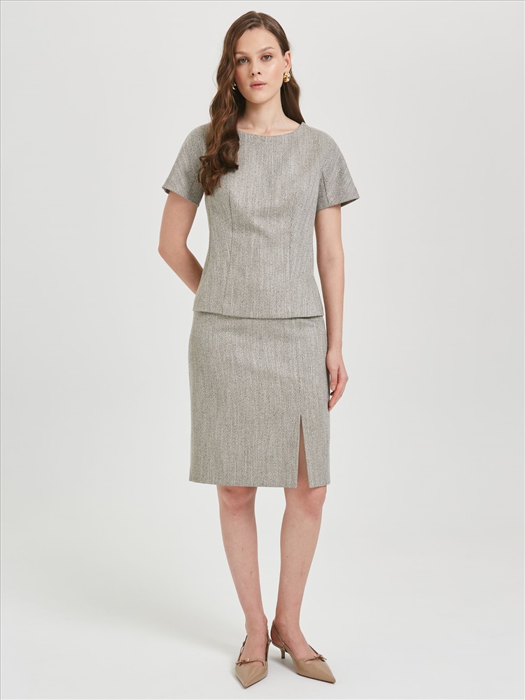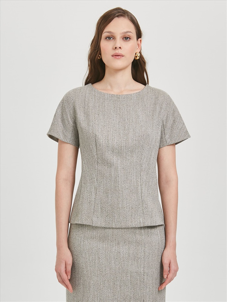 Блузка с цельнокроеным рукавом от фабрики Priz. Модель полуприлегающего силуэта, выполнена из текстильного полотна. Блузка с рельефами, без боковых швов. В среднем шве спинки потайная застёжка молния. Рукав короткий, с ластовицей. Идеальный выбор для офисных модниц., Оттенок цвета может незначительно отличаться от фото., Ожидание отправки (рабочих дней): 7, Длина: 42р - 56,5 см, 54р - 61 см., Размер модели: 44., Рост модели: 174 см., Состав:, Вискоза 58%, Полиэстер 40%, Спандекс 2%, Тип ткани:, Текстиль