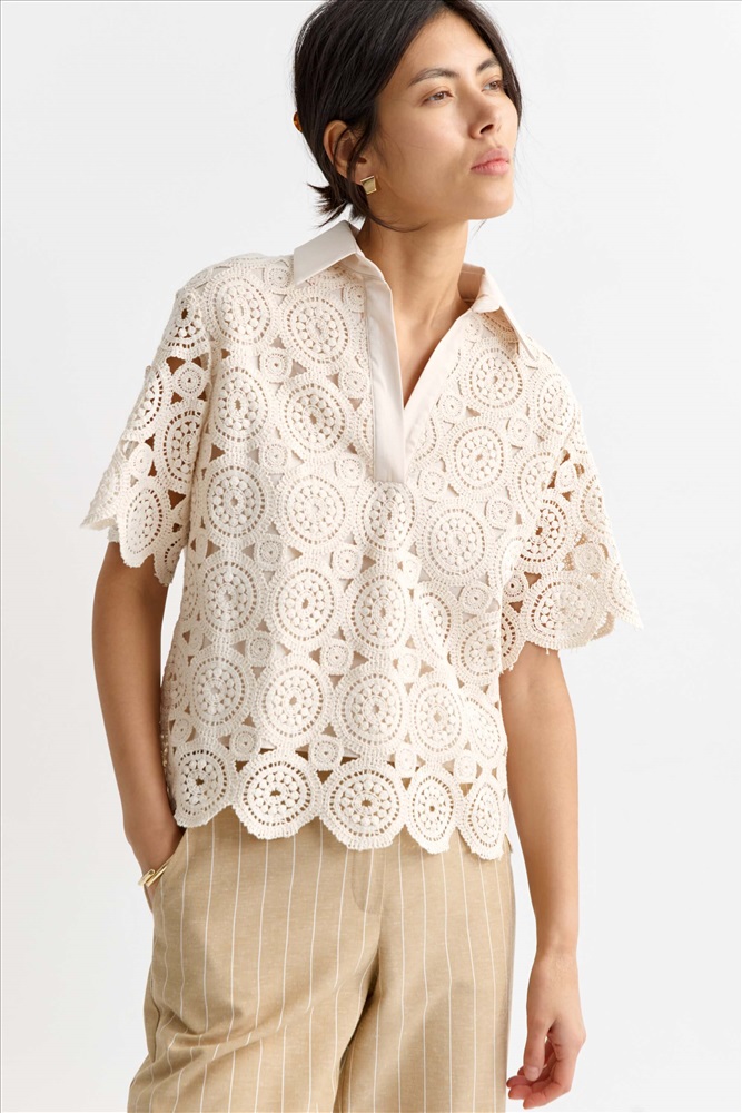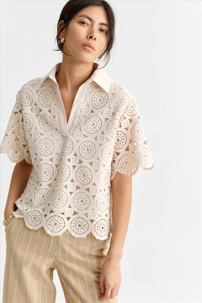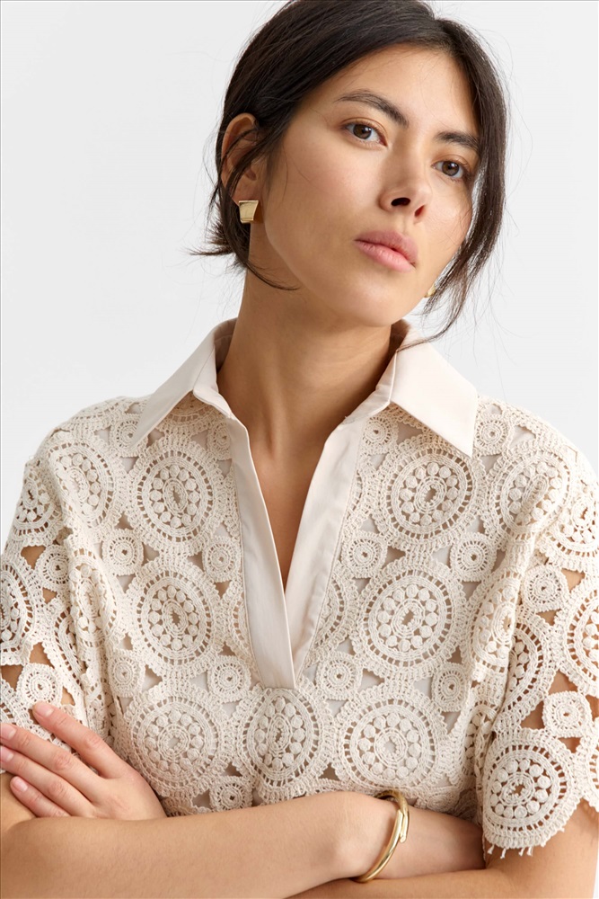 Состав: 100% Хлопок Длина: 60 см. (42 размер), 63 см. (52 размер) Цветовая гамма: Светло-бежевый Силуэт: Прямой Принт: Нет Коллекция: Весна #2 Рубашка-поло из хлопкового кружева “кроше”. Модель укороченная, прямого силуэта. Изделие на подкладке из хлопка. Воротник-поло. Рукав короткий, спущенный. Комментарии к товару