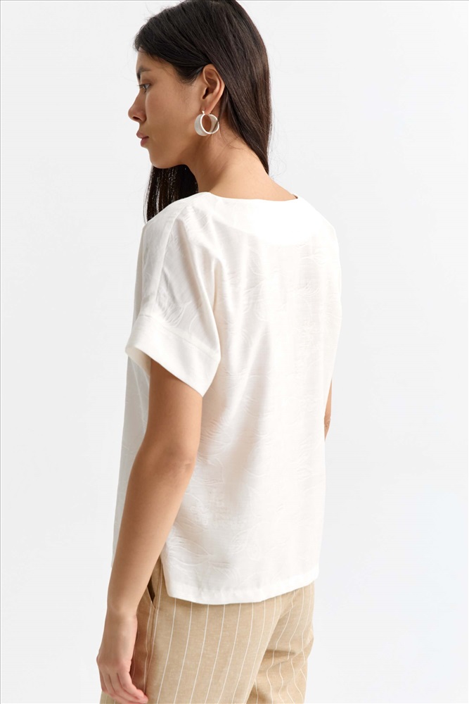 Состав: 85% Вискоза 15% Нейлон Длина: 62 см. (42 размер), 65 см. (52 размер) Цветовая гамма: Молочный Силуэт: Свободный Принт: Нет Коллекция: Весна #2 Элегантная блуза из вискозы с набивным рисунком. Модель свободного прямого силуэта. V-вырез на обтачке. Рукав спущенный, оформленный на манжету. В боковых швах разрезы. Комментарии к товару