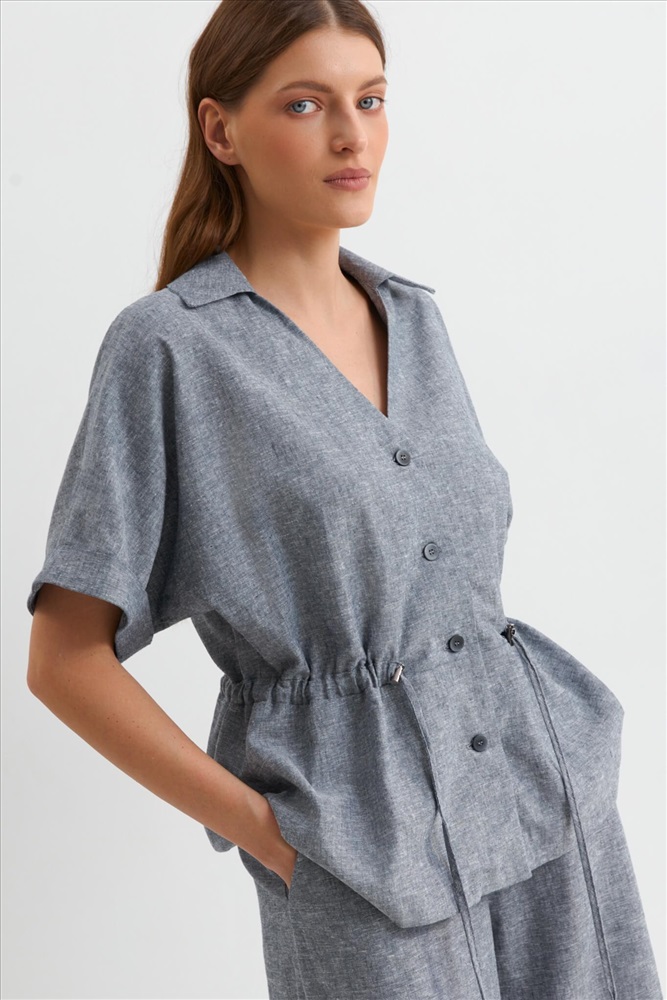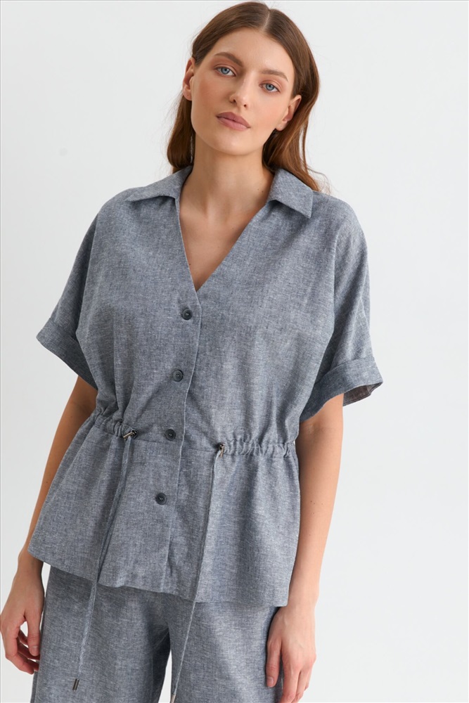 Состав: 70% лен 30% вискоза Цветовая гамма: Серый Силуэт: Свободный Принт: Нет Коллекция: Лето #3 Комфортная блуза из льняного полотна в благородном серо-голубом оттенке. Модель свободного силуэта с отложным воротником. V- вырез. Спущенный рукав с манжетой. Отрезная линия талии с кулиской и фиксаторами. Комментарии к товару