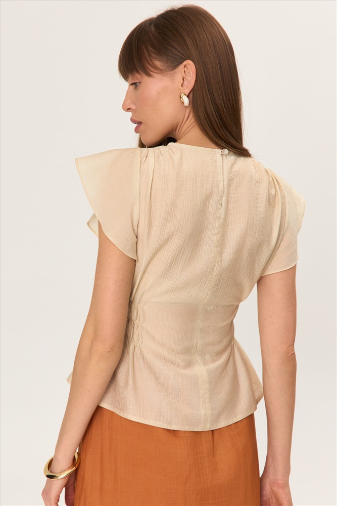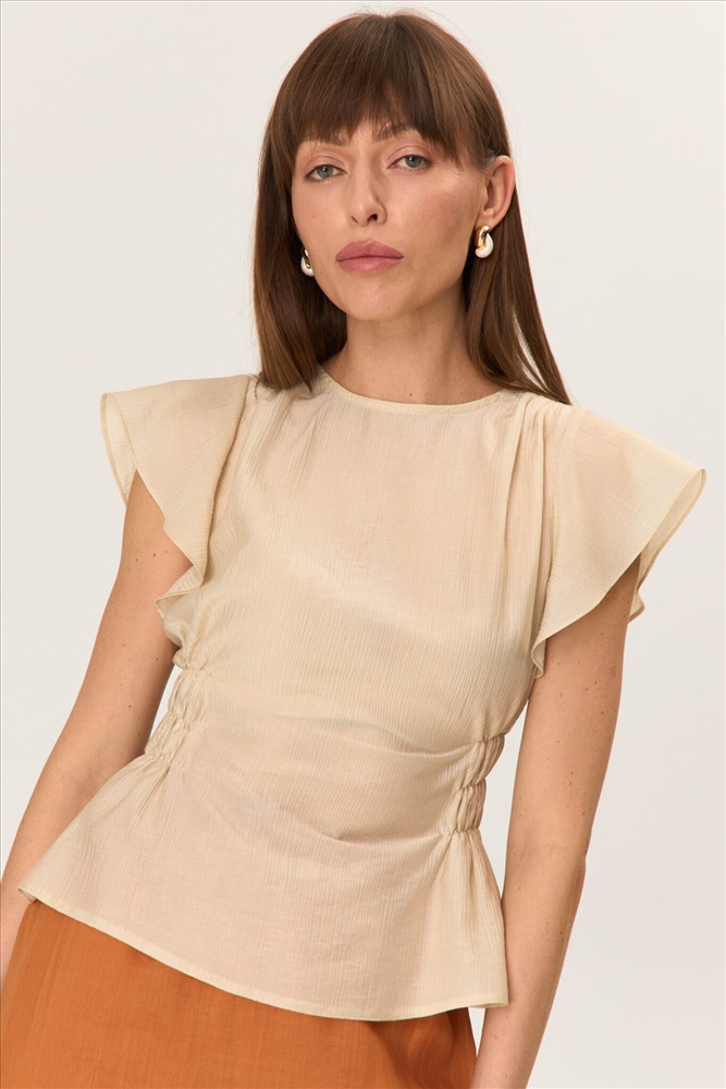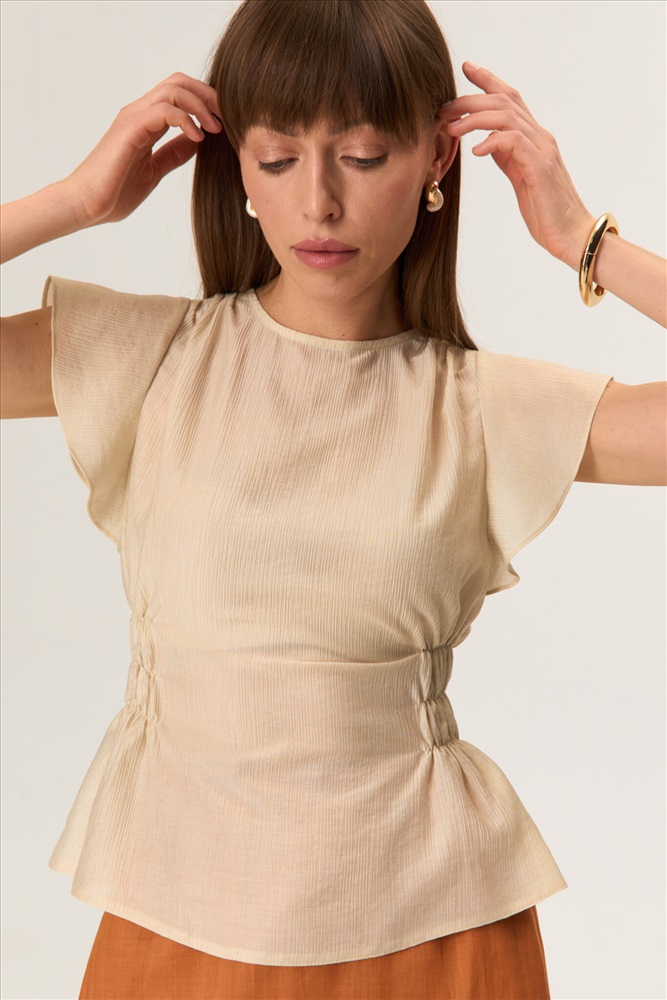 Состав: 85% Вискоза, 15% Нейлон Длина: 55 см. (42 размер), 58 см. (52 размер) Цветовая гамма: Айвори Силуэт: Полуприлегающий Принт: Нет Коллекция: Лето #5 Романтичная блуза из фактурной вискозы. Модель полуприлегающего силуэта. По линии талии по переду и спинки добавлены небольшие резинки создающие силуэт. По переду и спинки на плечах небольшая сборка. Рукав втачной «крылышко». По спинке застежка на воздушную петлю и пуговицу. Комментарии к товару