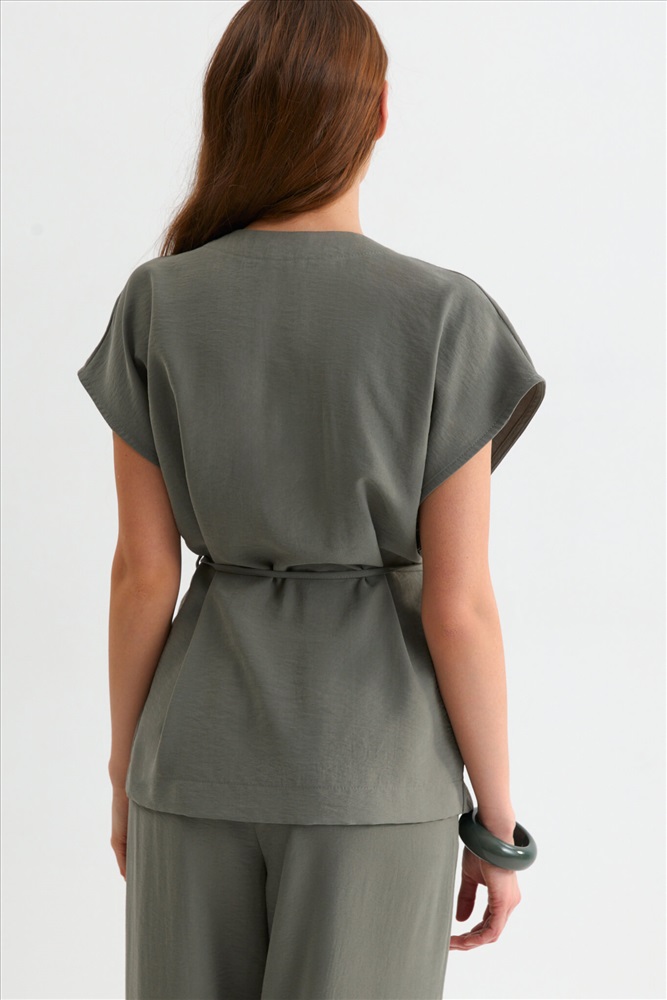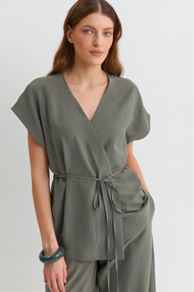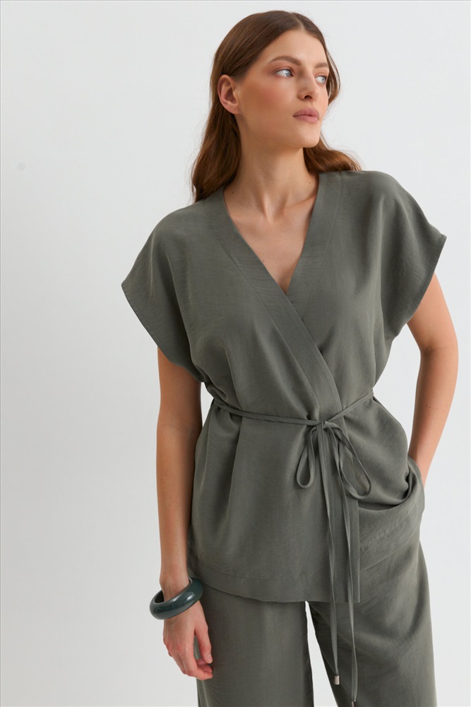Состав: 90% Лиоцелл 10% Нейлон Цветовая гамма: Хаки Силуэт: Свободный Принт: Нет Коллекция: Лето #3 Комфортная блуза из лиоцелла в благородном оттенке. Модель свободного силуэта на запах. Рукав спущенный. Застежка внутренняя завязка, по линии талии фиксируется тонким поясом из основной ткани. Комментарии к товару