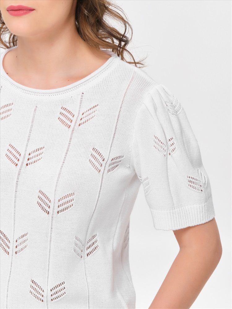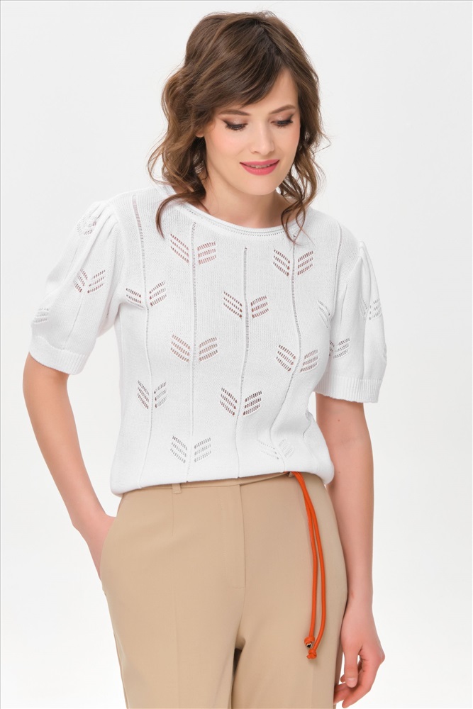 Блузка вязаная белая от фабрики Priz. Модель прямого силуэта. По окату рукава заложены защипы. Короткие рукава. Круглый вырез горловины. Комфорт и стиль на каждый день., Оттенок цвета может незначительно отличаться от фото., Ожидание отправки (рабочих дней): 7, Размер модели: 44., Рост модели: 174 см., Состав:, Хлопок 60%, Полиэстер 40%, Тип ткани:, Вязаный трикотаж