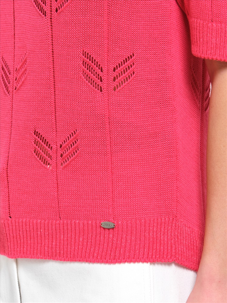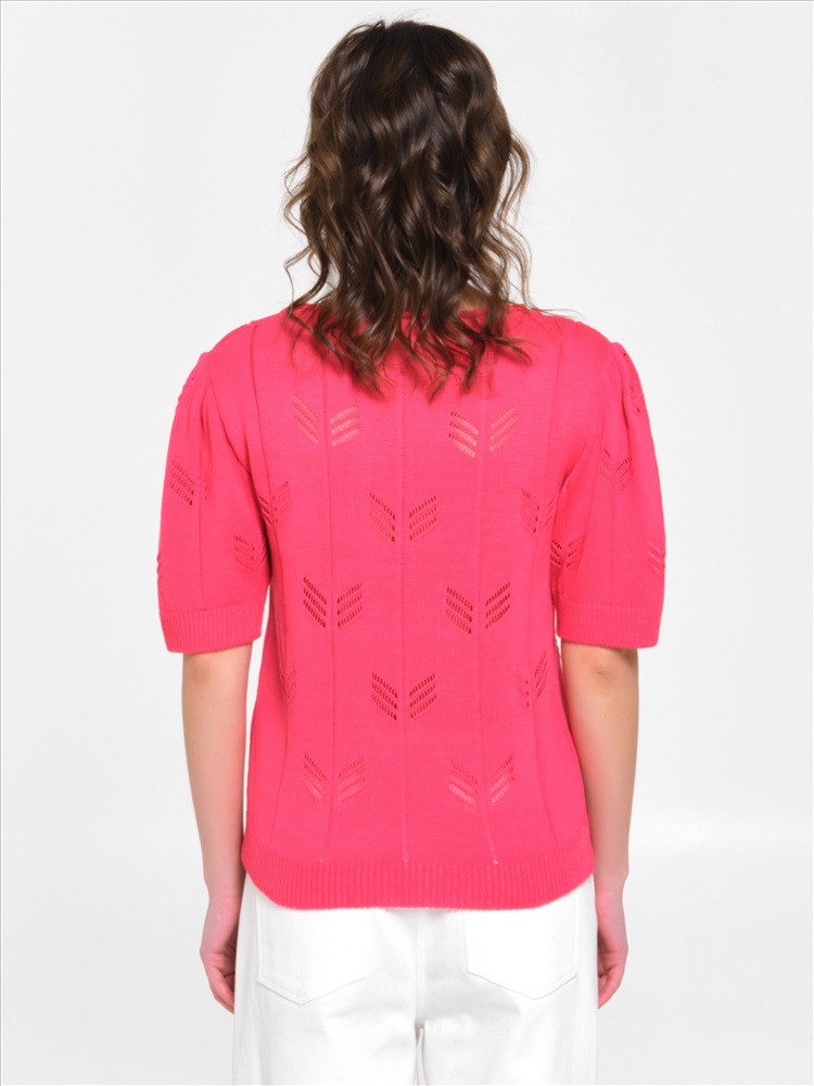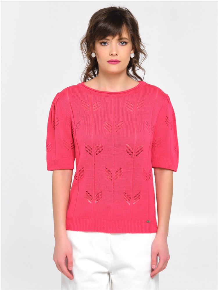 Блузка вязаная розовая от фабрики Priz. Модель прямого силуэта. По окату рукава заложены защипы. Короткие рукава. Круглый вырез горловины. Комфорт и стиль на каждый день., Оттенок цвета может незначительно отличаться от фото., Ожидание отправки (рабочих дней): 7, Размер модели: 44., Рост модели: 174 см., Состав:, Хлопок 60%, Полиэстер 40%, Тип ткани:, Вязаный трикотаж