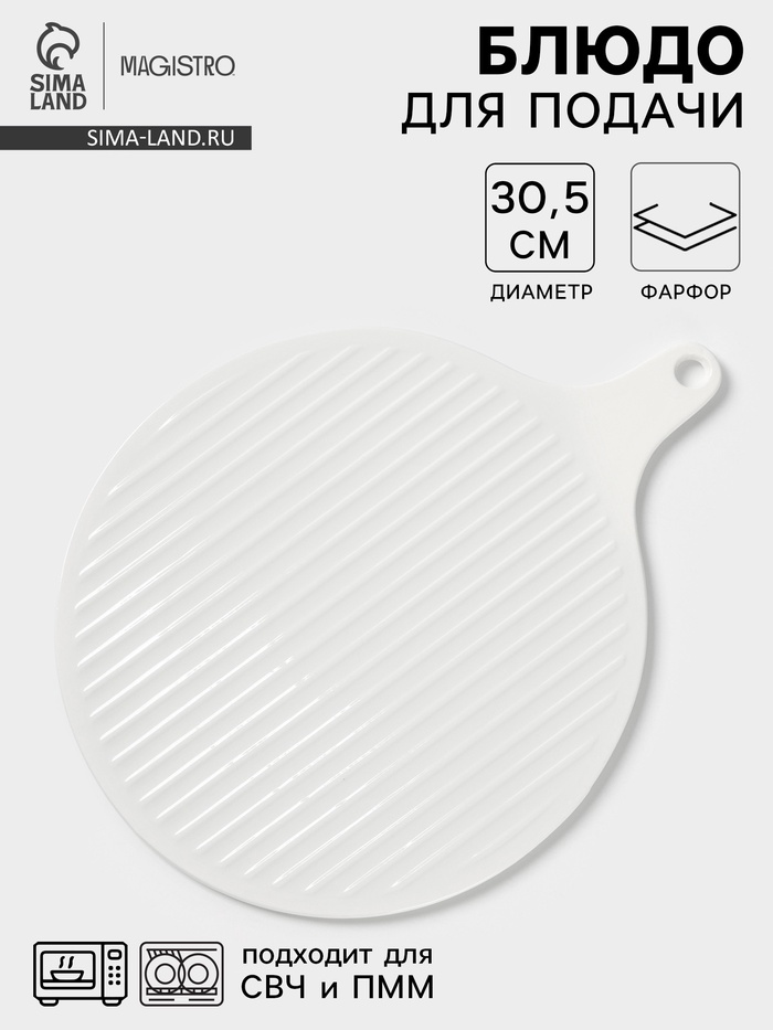 Производитель: Magistro; Габариты: 31 x 24 x 1; Страна: Китай; В боксе: 24 шт; Состав: Фарфор; Материалы: фарфор; Фасовка: по 1 шт; Индивидуальная упаковка: Без упаковки; Габариты товара: 24 см × 0,9 см × 31 см; Сертификат: СТР; Набор: Нет; Цвет: Белый; Диаметр, см: 30,5; Тематика: Однотонная; Рисунок: Нет; Крышка: Нет; Материал: Фарфор; Вид тарелки: Плоская; Можно мыть в посудомоечной машине: Да; Можно использовать в СВЧ-печи: Да; Текстура: С рельефом; Особенности: С барельефом; Матовая поверхность: Нет