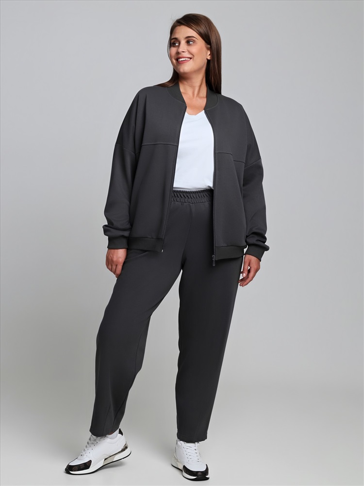 Ткань: Лининг Куртка – женская из гладкокрашенного трикотажного полотна «лининг» прямого силуэта, свободная, с длинными втачными рукавами, горловиной овальной формы, обработанной втачной планкой, центральной бортовой застежкой на тесьму «молния». Полочка состоит из трех деталей, на нижней части в рельефах выполнены карманы, низ изделия с притачным поясом, рукава с притачными манжетами. Пояс, планка горловины, манжеты рукавов выполнены из трикотажного полотна «кашкорсе».