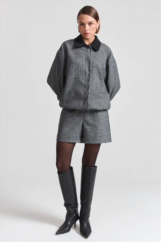 Состав: 55% вискоза 35% полиэстер 10% шерсть Длина: 67 см. (42 размер), 69 см. (52 размер) Цветовая гамма: Графит/елочка Силуэт: Свободный Принт: Нет Коллекция: Осень #4 Бомбер из костюмного полотна с шерстью и контрастным воротником. Свободная модель на подкладке из поливискозы, контрастный воротник из вельвета. Рукав спущенный, супатная застежка на пуговицах. По низу изделия внутренняя резинка, на рукавах отрезные манжеты на пуговицах. Комментарии к товару