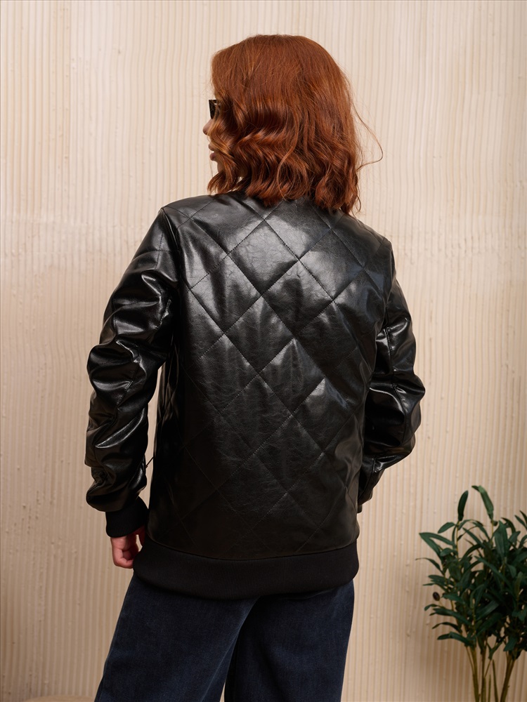 Модель: Шайн-черный Бренд: Yollochka Цвет: Черный Страна: РОССИЯ Вид изделия: Бомбер Возраст: Взрослый Система размеров: Россия Номер тех. регламента: О безопасности легкой промышленности Состав: 100 % полиэстер Демисезонная женская куртка-бомбер в повседневном стиле: - искусственная кожа, красивая и износостойкая - укороченная модель - классический крой - прострочка ромбом - ветрозащитный клапан на кнопках