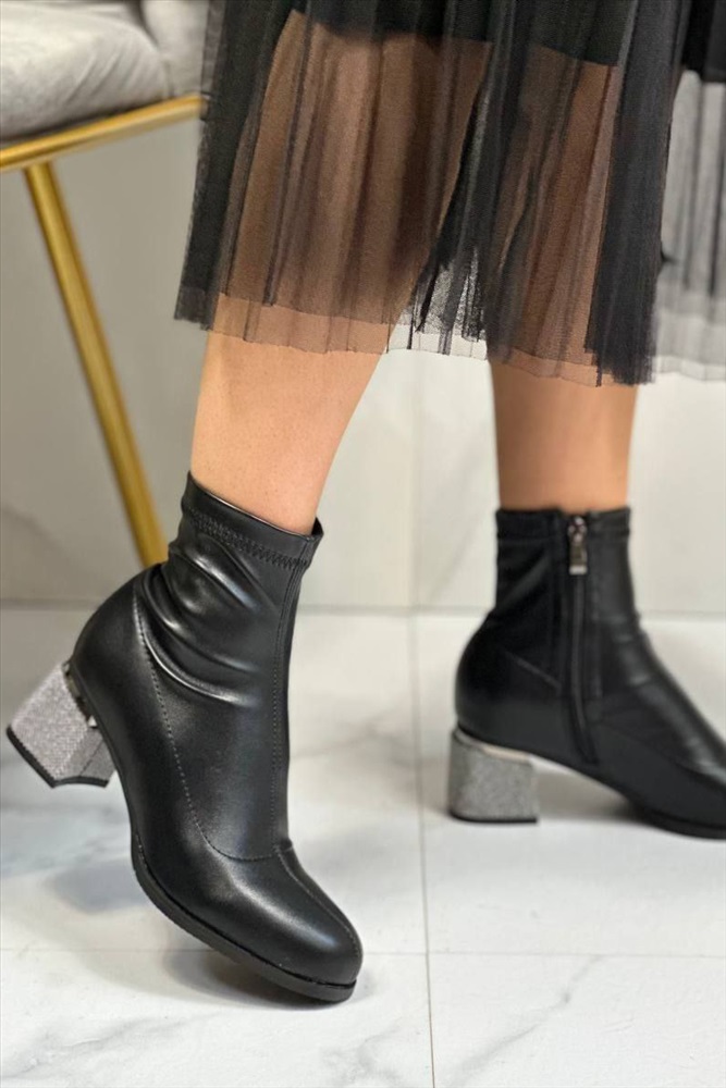 Материал: Искусственная кожа Ботильоны кожаные на толстом каблуке черные