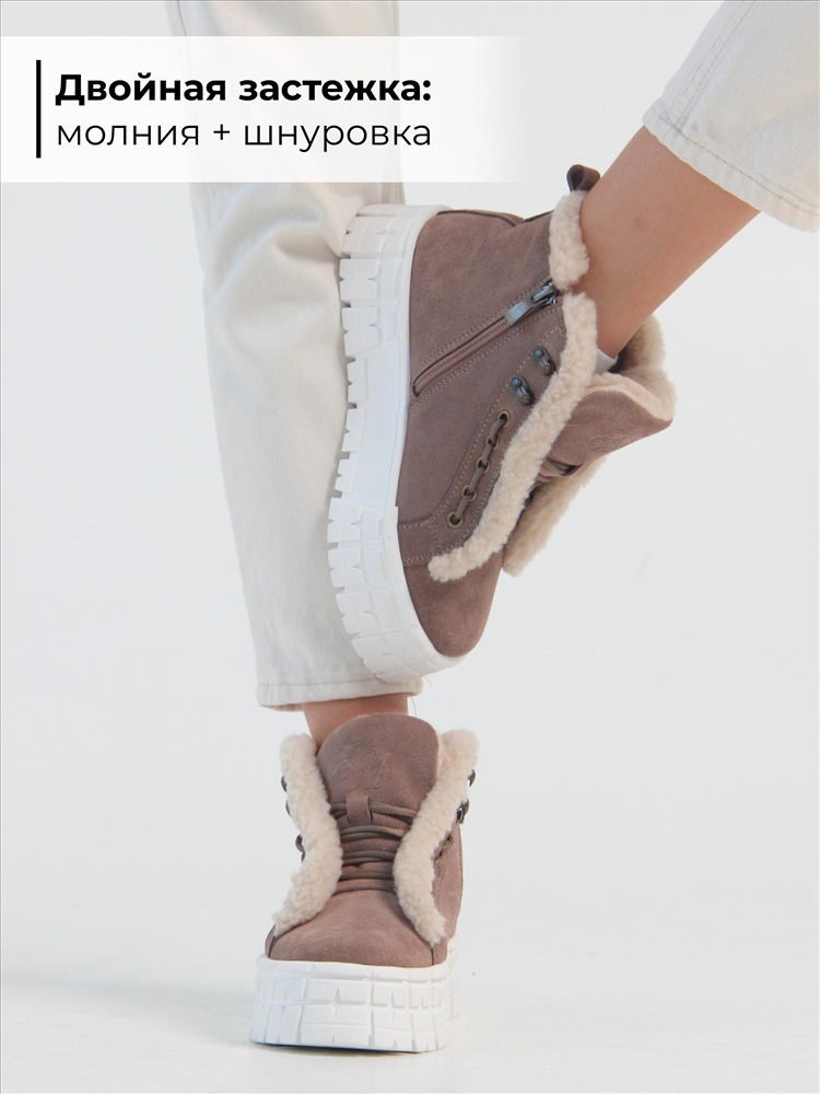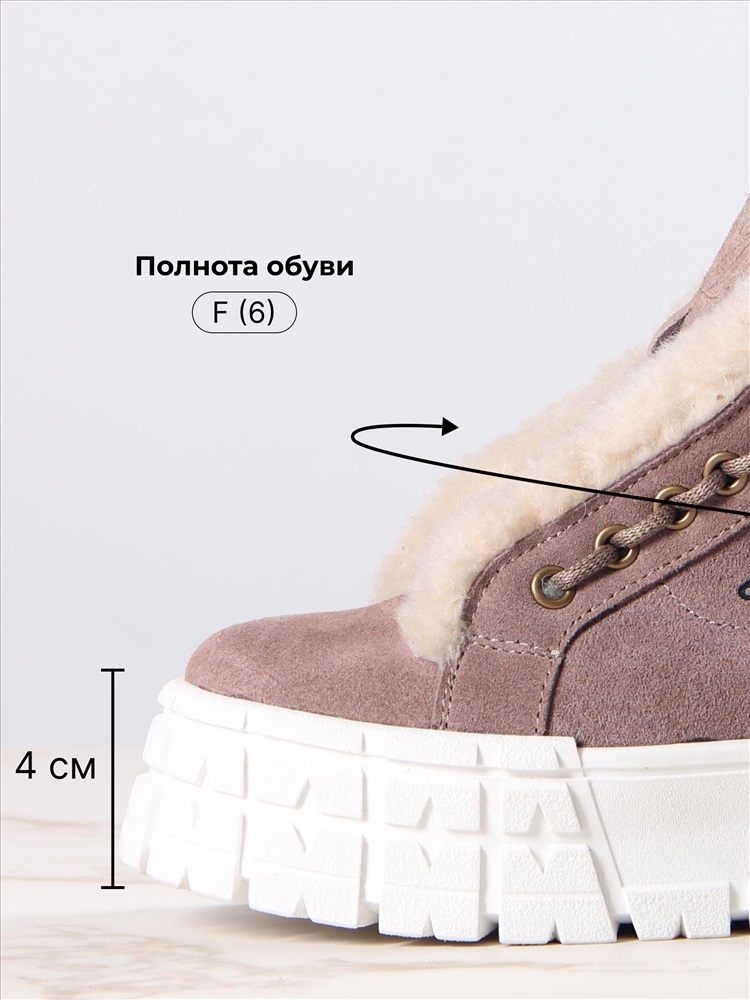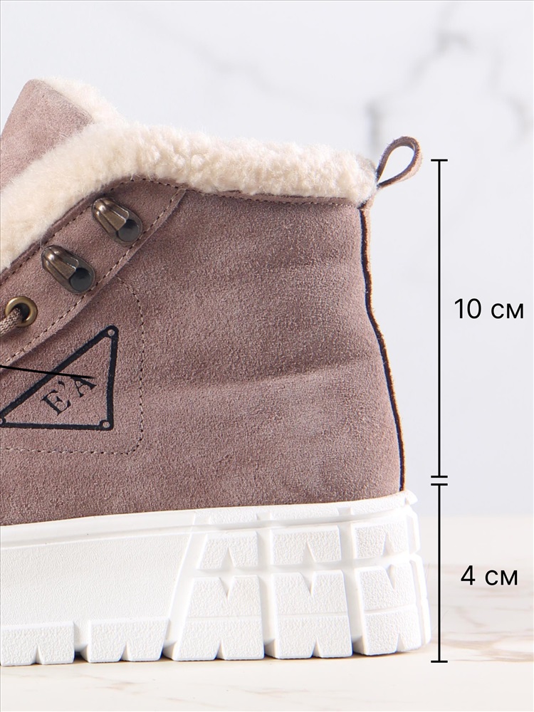 Высота голенища: 10 Высота подошвы: 4 Материал верха: Замша Внутренний материал: Байка Материал подошвы: ТЭП Цвет: Коричневый Таблица размеров