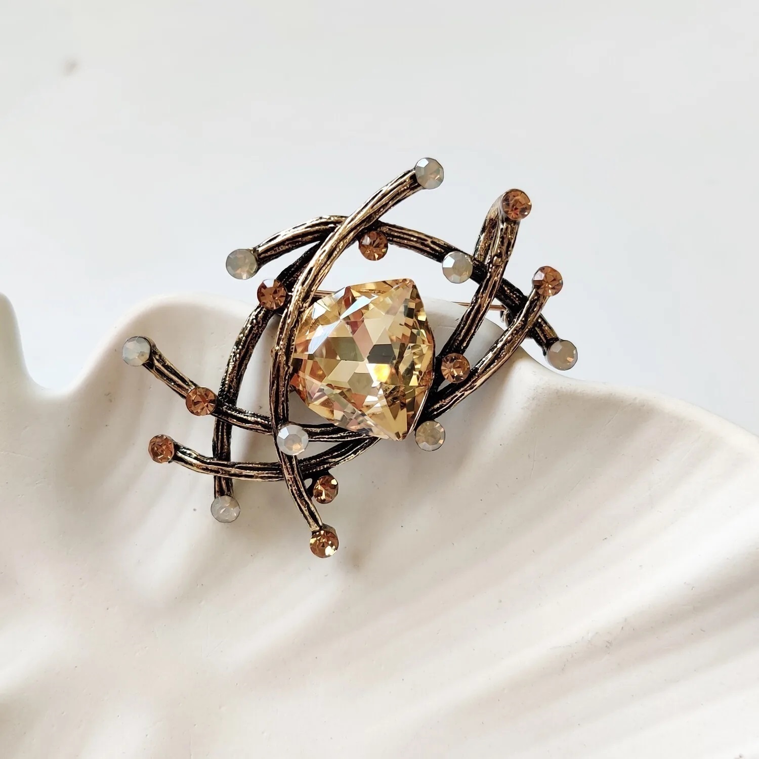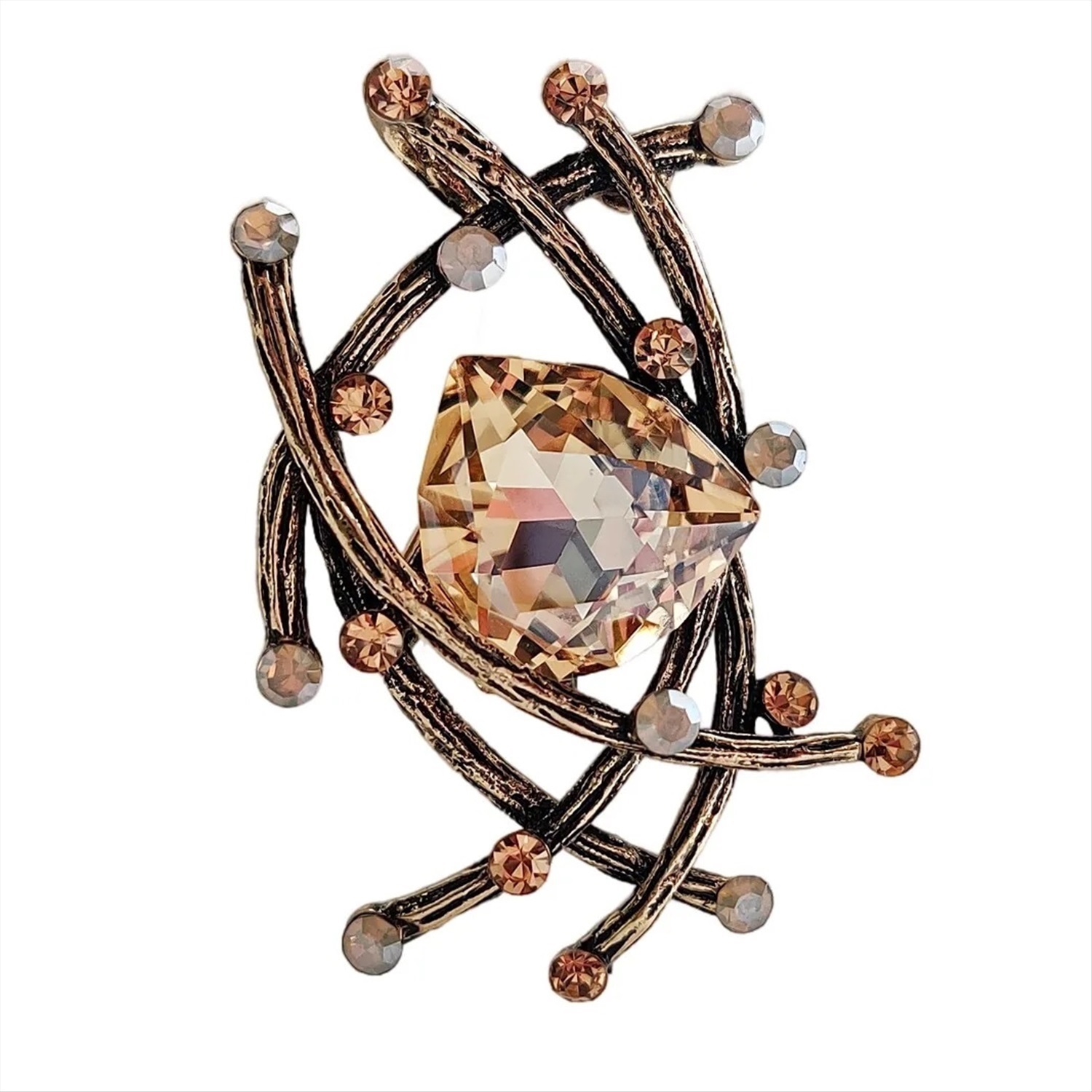 Вставка: Чешские кристаллы; Материал изделия: ювелирный сплав; Тематика броши: Классика; Размер: 2.5*5 см