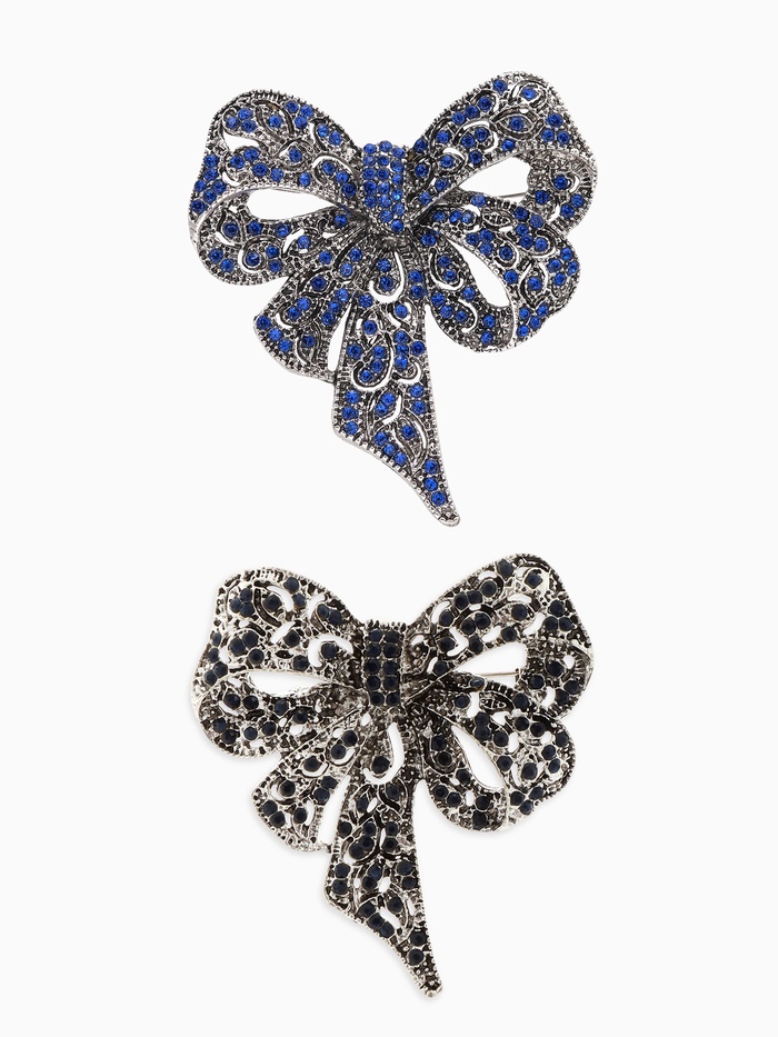 Металлическое основание с покрытием чернёного серебра придаёт броши благородный оттенок и обеспечивает долговечность изделия. Вставки из страз добавляют блеска и глубины, подчёркивая сложность и изящество узора. Тематика банта символизирует женственность и элегантность, делая украшение универсальным подарком для женщин, ценящих классический стиль с современным акцентом.